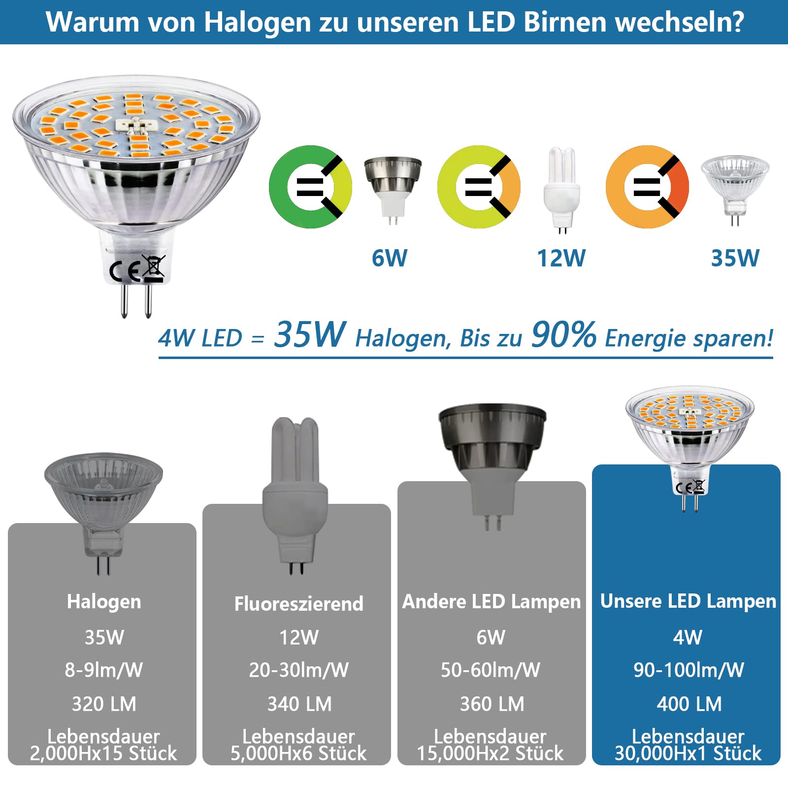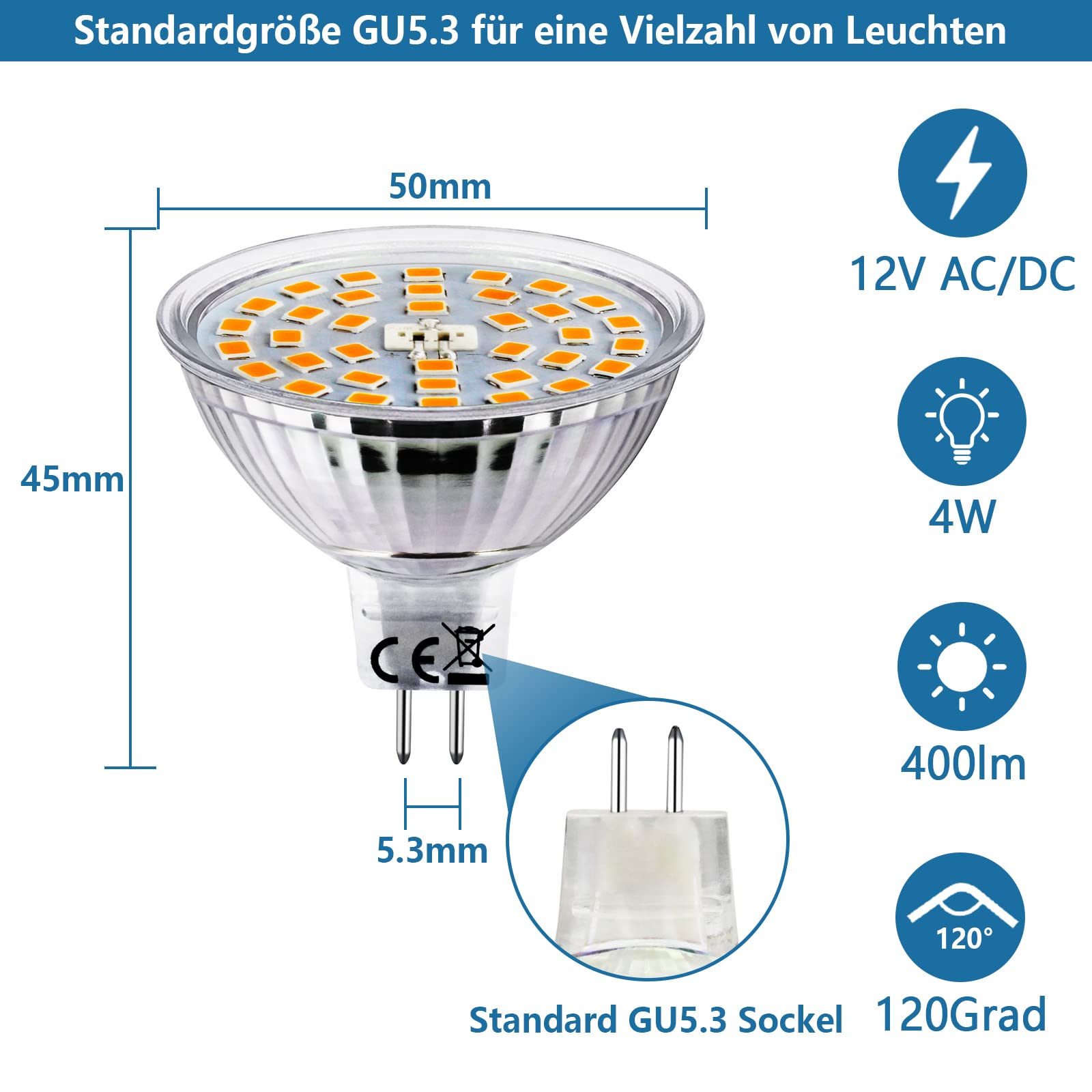 HiBay LED Leuchtmittel GU5.3 Lampe Warmweiss 2700K 4W (ersetzt 35W Halogenlampen) 400lm MR16 LED Birne 12V AC/DC Spot 10er Set