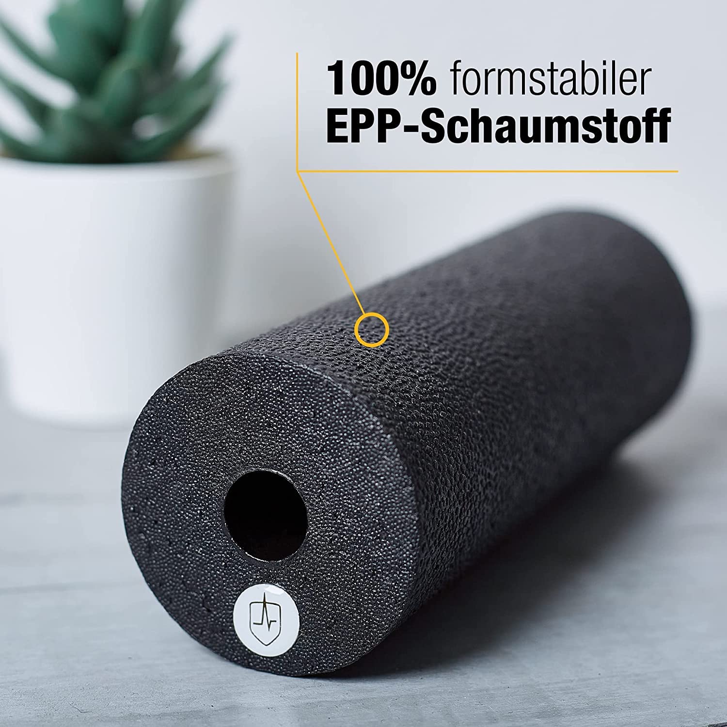 Die Faszienroller lassen sich sowohl an der Wand als auch am Boden anwenden. Sie können den Massagerollen über die