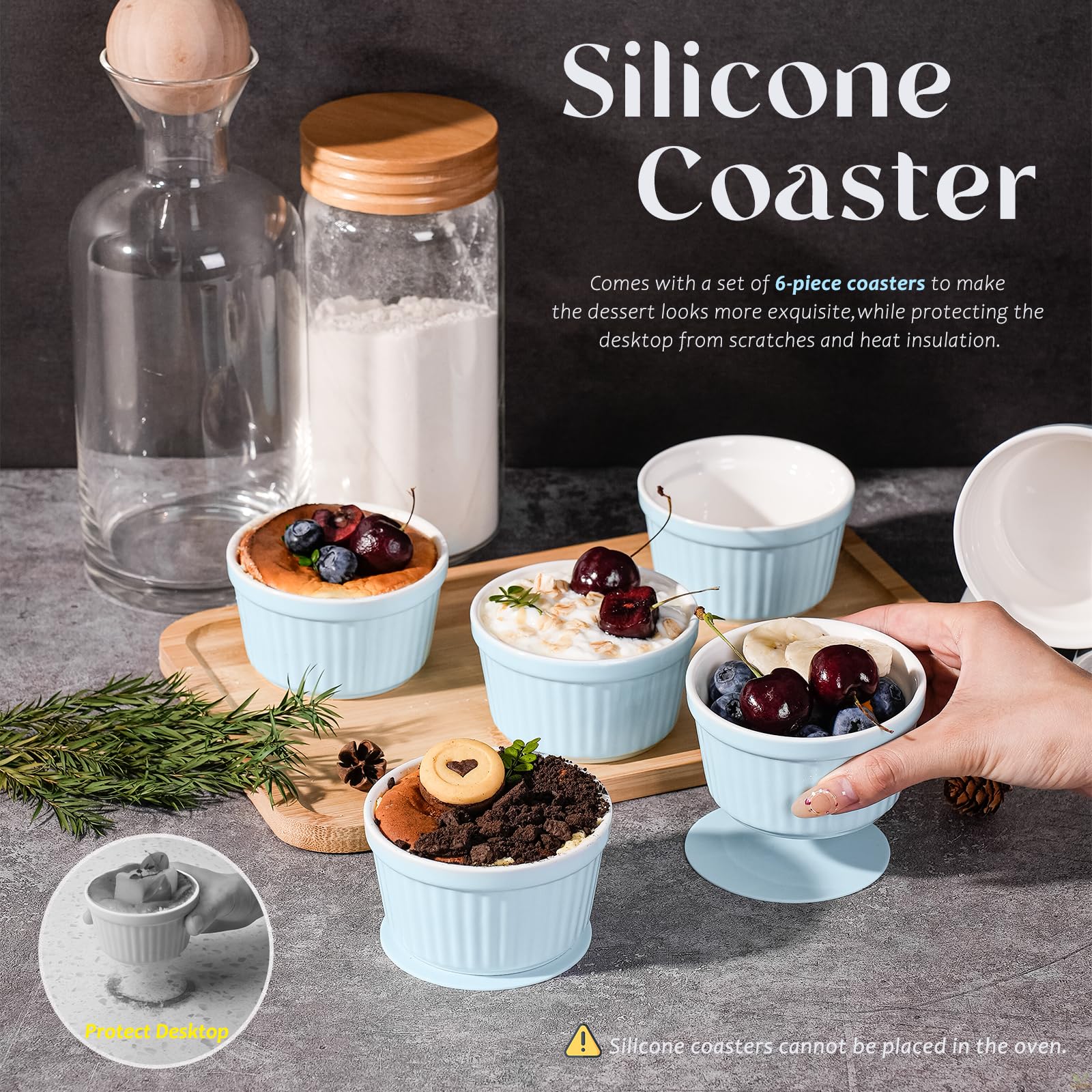Highkit Creme Brulee Schälchen 6 Stück, 9 cm - 200 ml Souffle Förmchen Backofenfest, Souffleeförmchen Schüsseln, Creme Brulee Schalen, Keramikförmchen Ofenfeste Förmchen, Ragout Fin Schalen,Blau