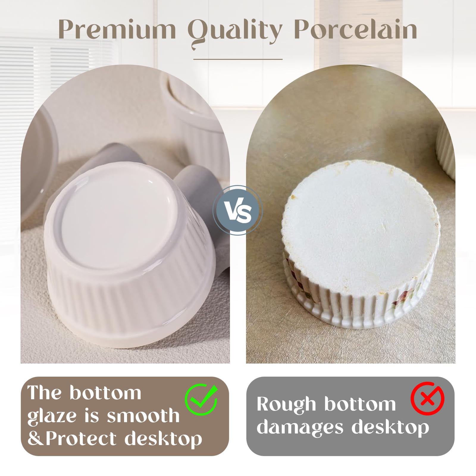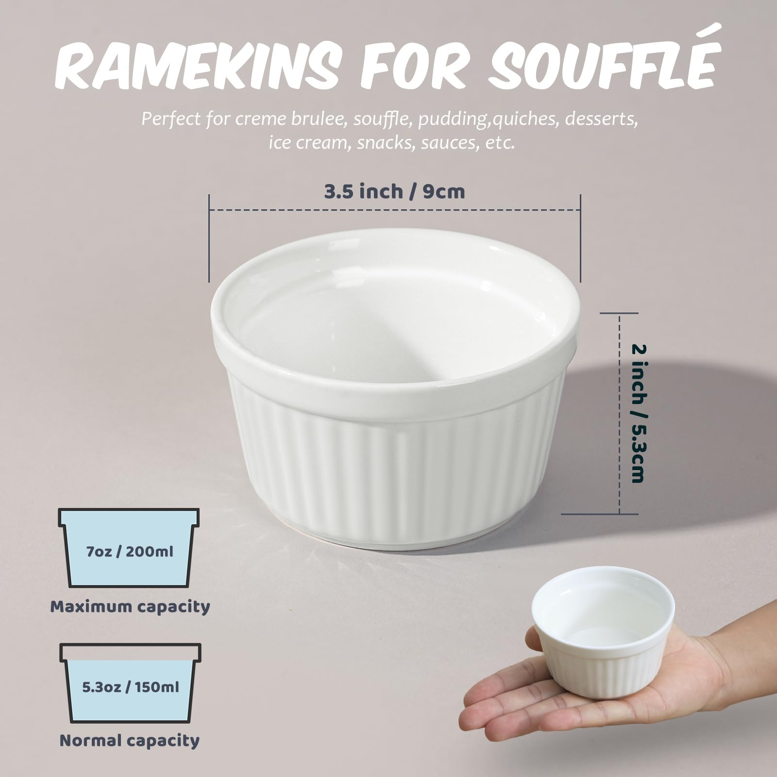 Highkit Creme Brulee Schälchen 6 Stück, 9 cm - 200 ml Souffle Förmchen Backofenfest, Souffleeförmchen Schüsseln, Creme Brulee Schalen, Keramikförmchen Ofenfeste Förmchen, Ragout Fin Schalen,Weiss
