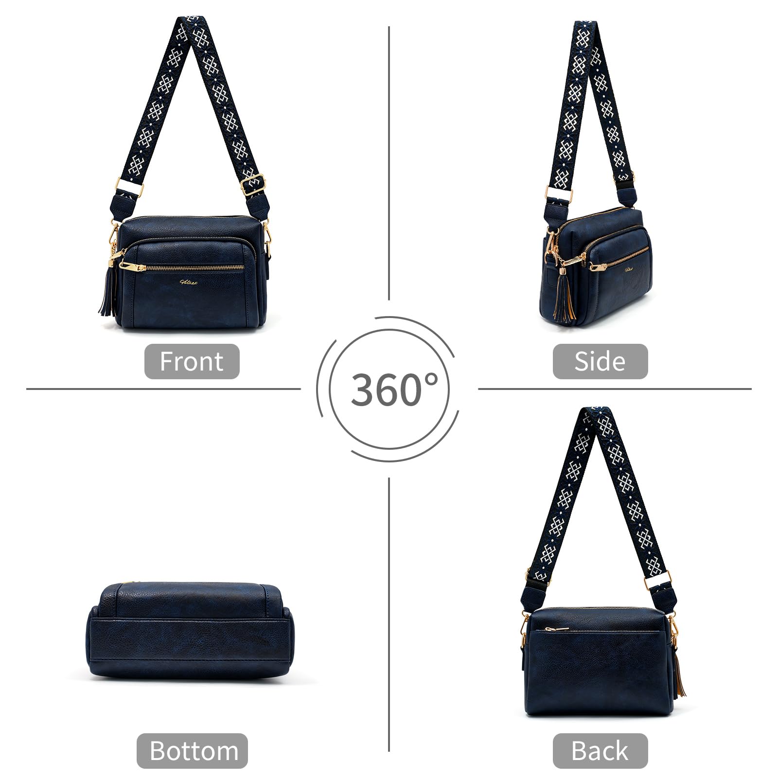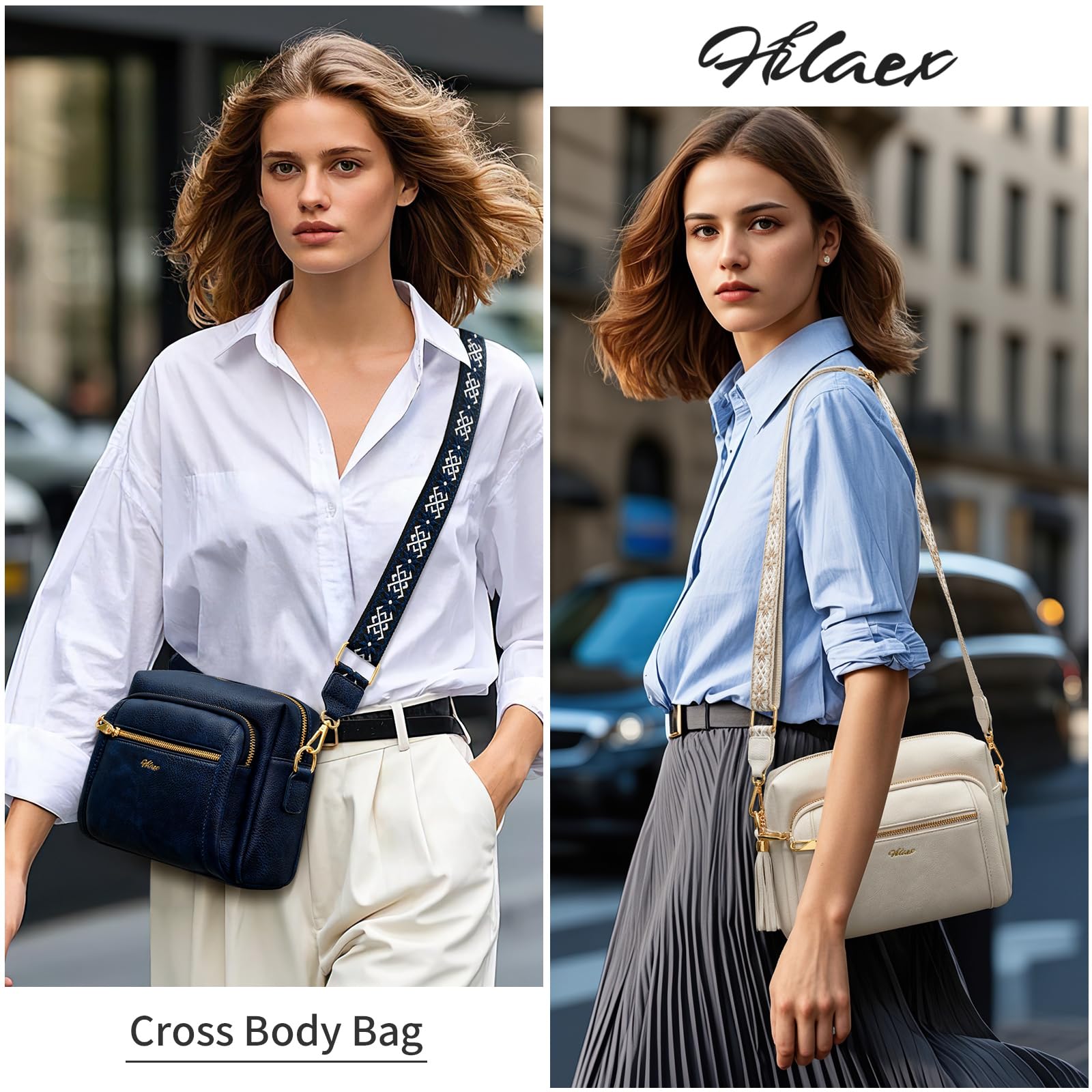 HILAEX Umhängetasche Damen mit Anti Diebstahl, Handtasche Damen Mittelgross mit 4 Fächern, mit Verstellbar Abnehmbar Breiter Gurt