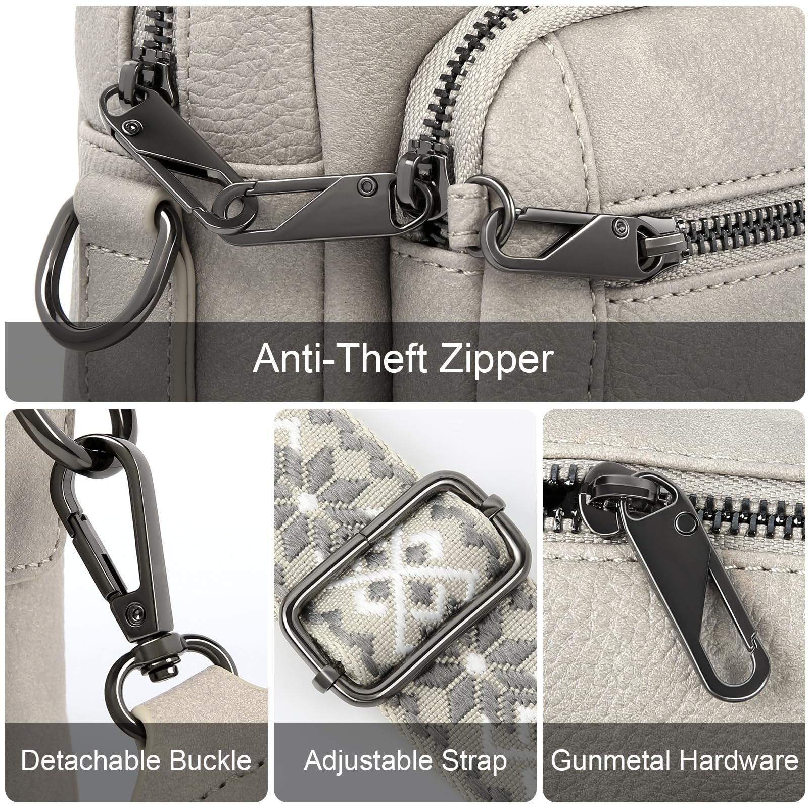 HILAEX Umhängetasche Damen mit Anti Diebstahl, Handtasche Damen Mittelgross mit 4 Fächern, mit Verstellbar Abnehmbar Breiter Gurt