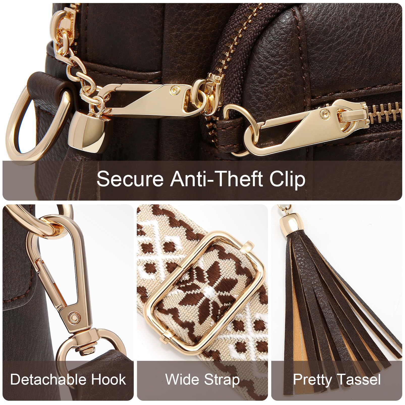 HILAEX Umhängetasche Damen mit Anti Diebstahl, Handtasche Damen Mittelgross mit 4 Fächern, mit Verstellbar Abnehmbar Breiter Gurt