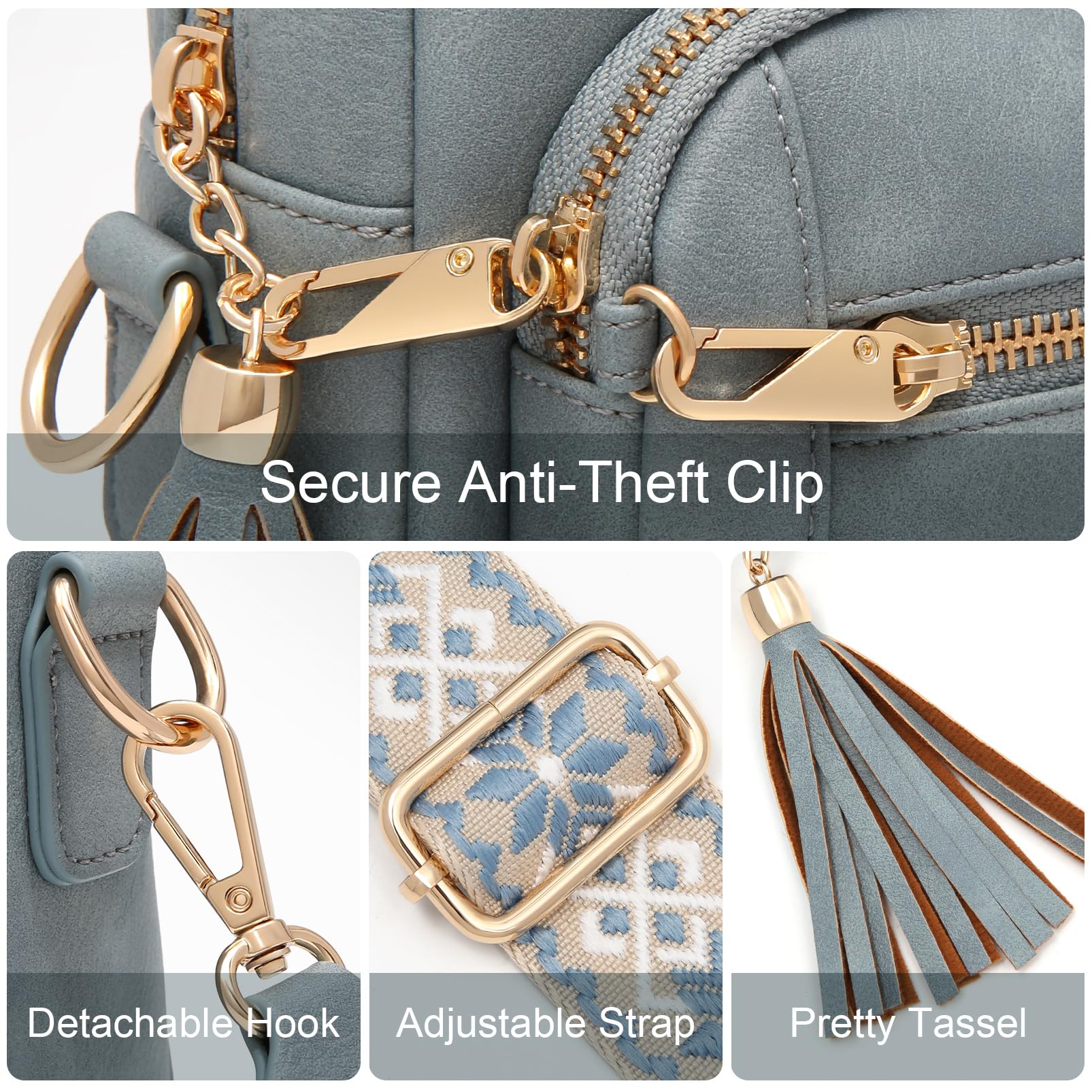 HILAEX Umhängetasche Damen mit Anti Diebstahl, Handtasche Damen Mittelgross mit 4 Fächern, mit Verstellbar Abnehmbar Breiter Gurt