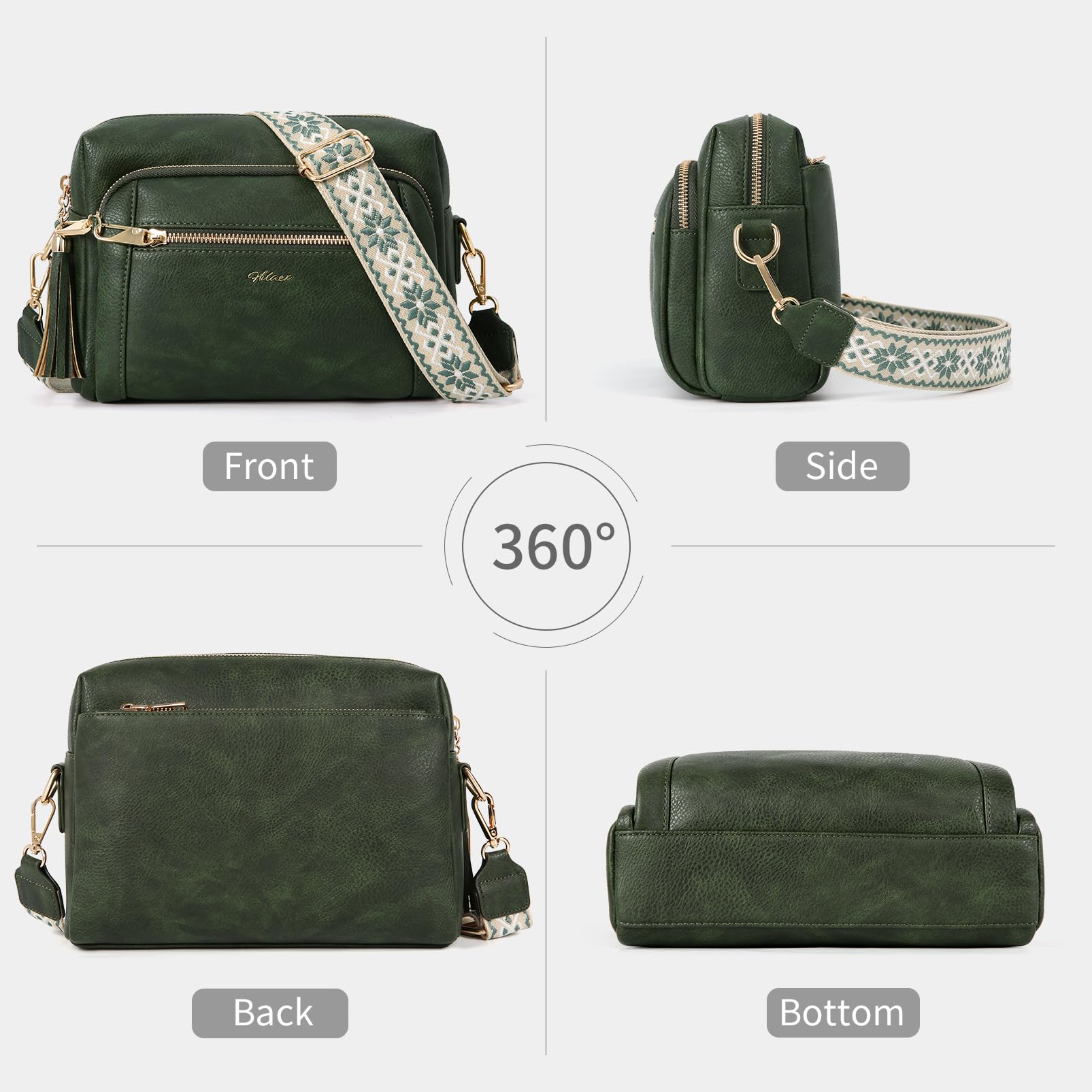 HILAEX Umhängetasche Damen mit Anti Diebstahl, Handtasche Damen Mittelgross mit 4 Fächern, mit Verstellbar Abnehmbar Breiter Gurt
