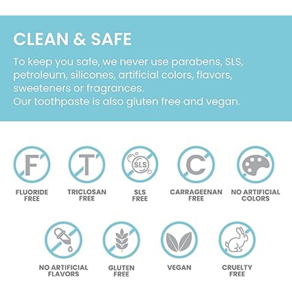 - NO ARTIFICIAL INGREDIENTS: NO Fluoride, NO Sodium Lauryl Sulfate (SLS), NO Carrageenan. NO harsh abrasives, yet it tastes and foams wonderfully.
