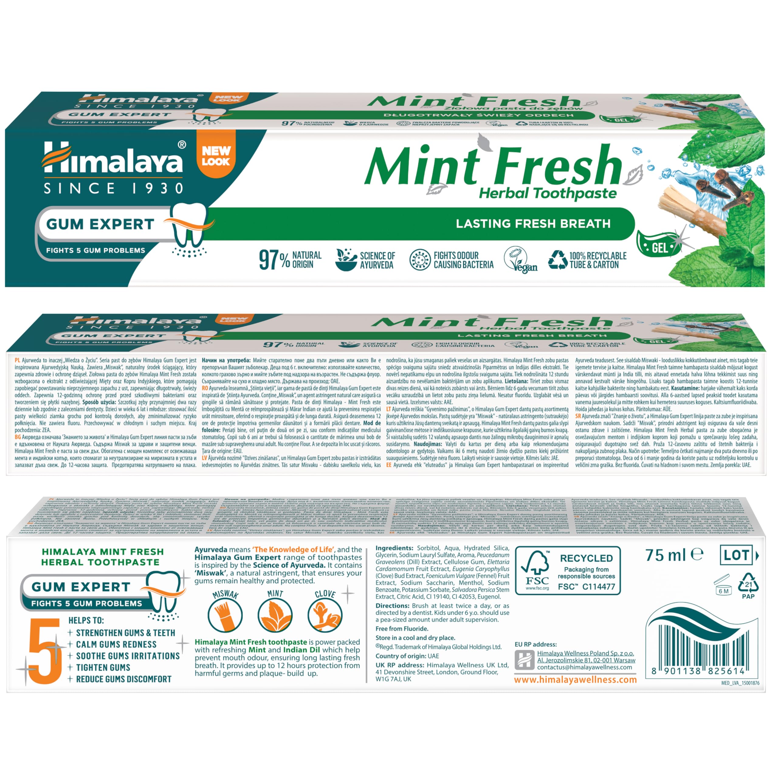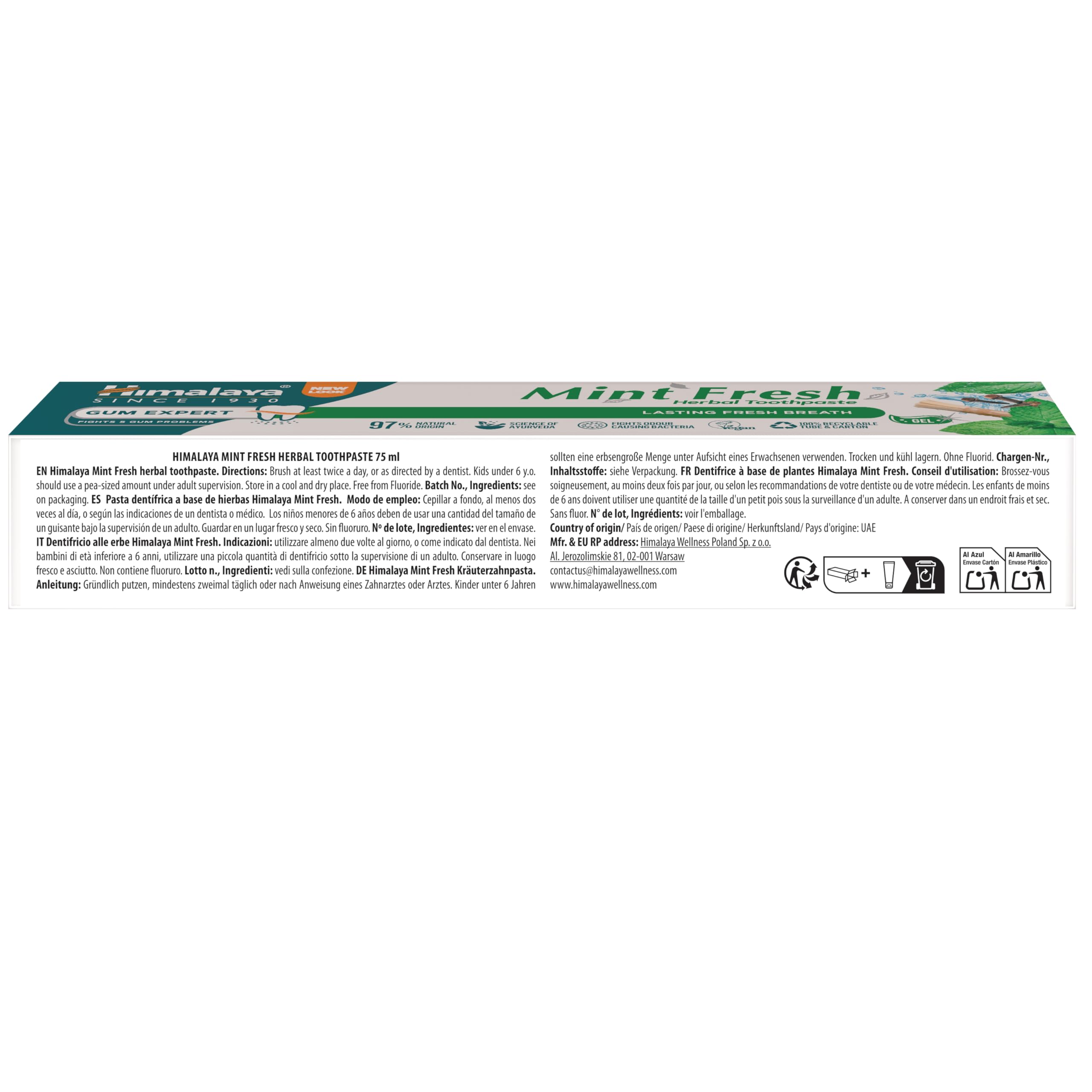 Himalaya Mint Fresh Herbal Toothpaste Gum Expert Range for Healthy, Protected Gums and Fresh Breath, 75 ml