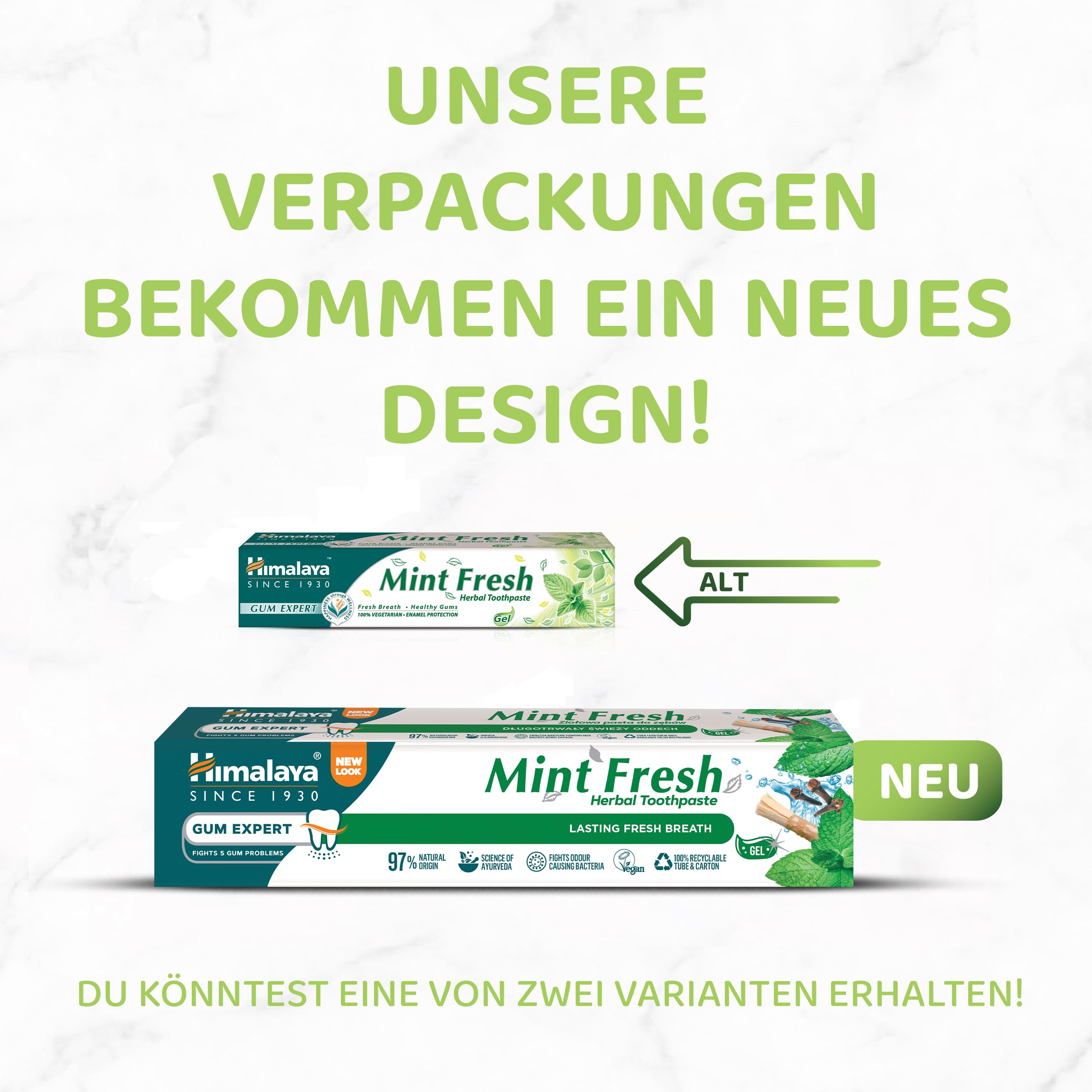 Mindestanzahl für die Bestellung von "Himalaya Mint Fresh Herbal Toothpaste Gum Expert Range for Healthy, Protected Gums and Fresh Breath, 75 ml" ist 1.
