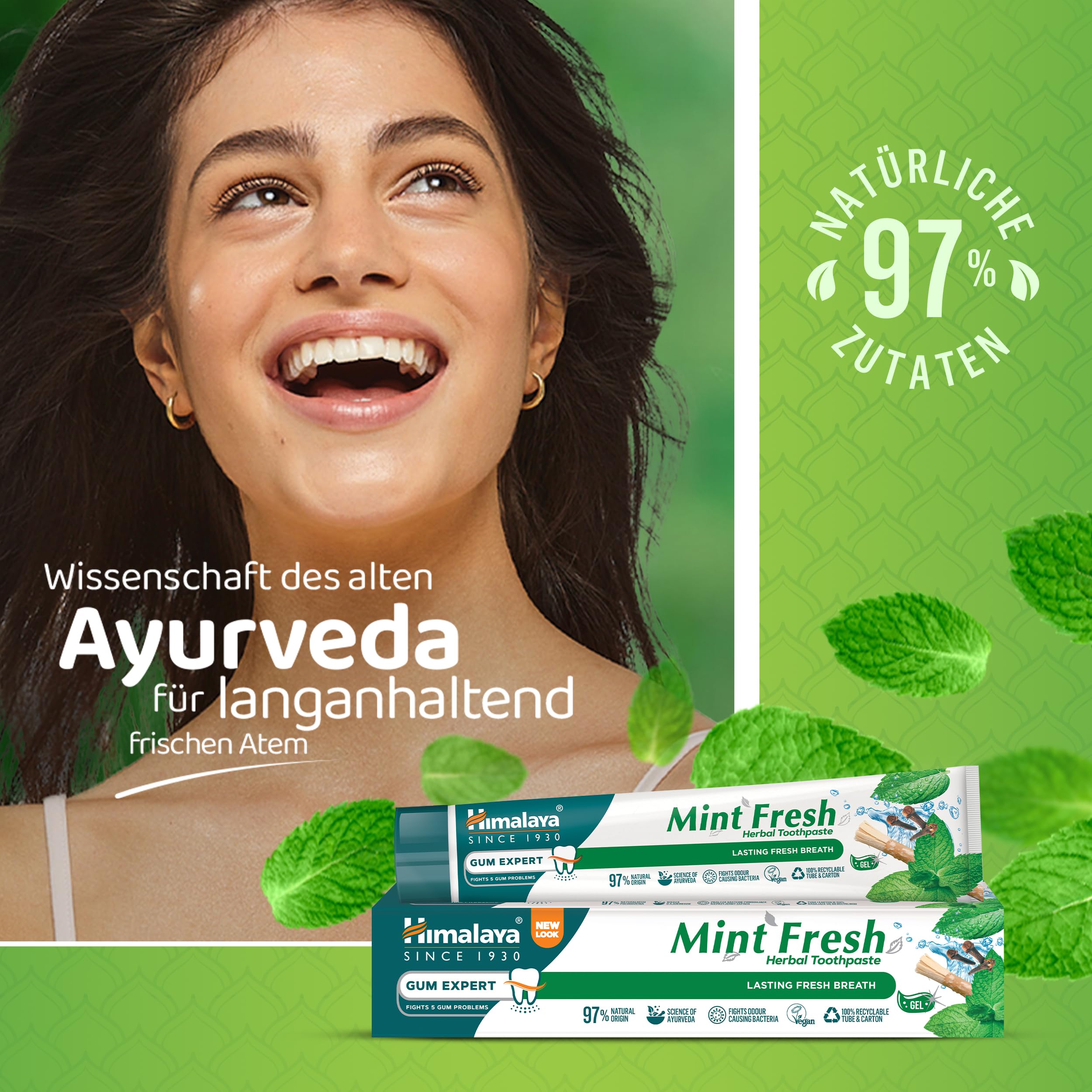• GESUNDE ZÄHNE UND FRISCHEN ATEM: Durch die antibakterielle Wirkung von Minzextrakt und indischem Fenchel sorgt Himalaya Mint Fresh für stundenlang frischen Atem. Die natürlichen Inhaltsstoffe bieten bis zu 12 Stunden Schutz vor Bakterien und Plaquebildung