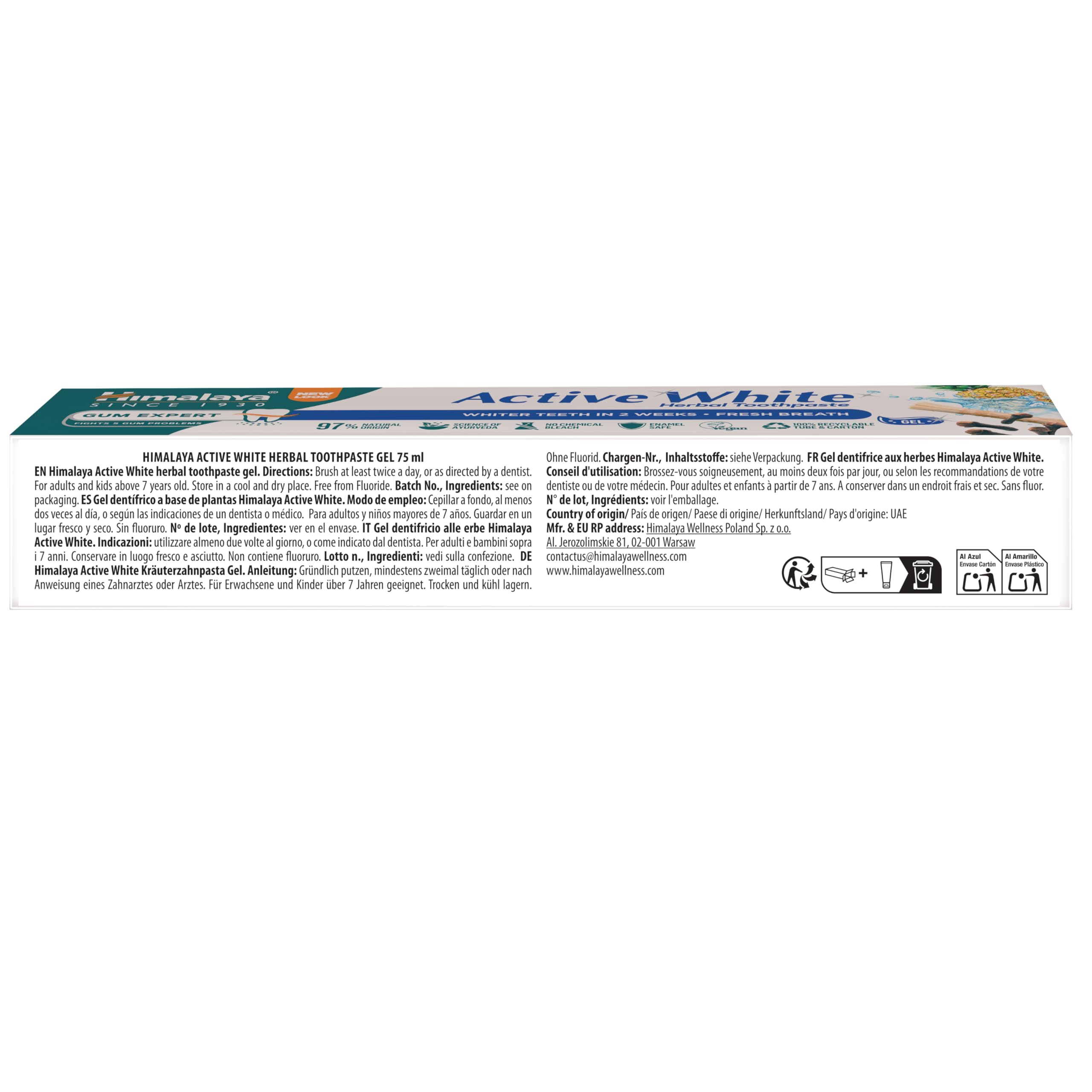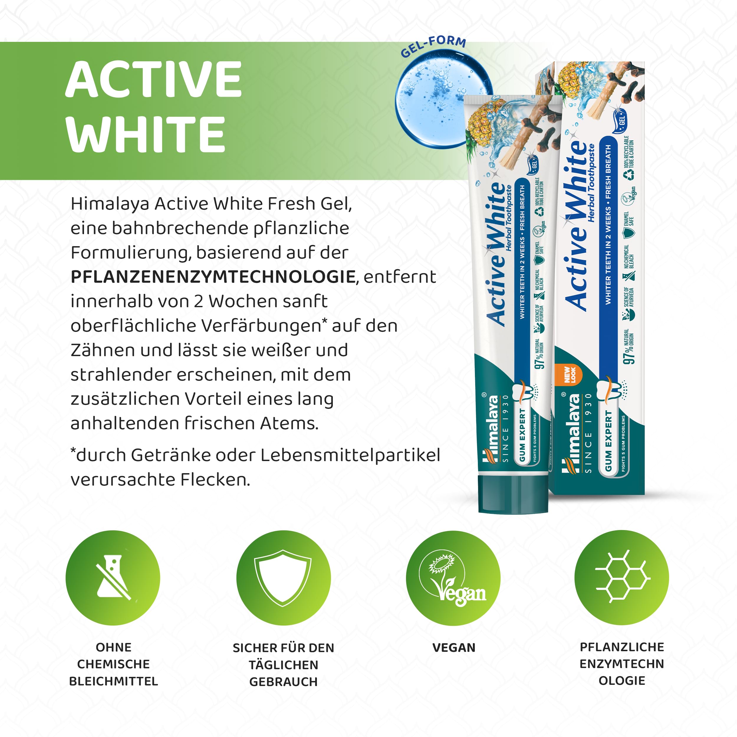 Himalaya Active white Gel | Herbal toothpaste with fruit enzymes |Teeth whitening, 100% vegetarian -75 ml