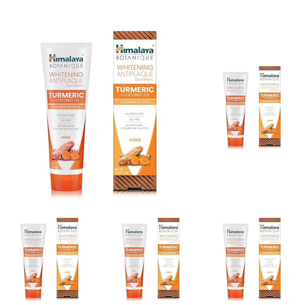 Himalaya Whitening Antiplaque Toothpaste with Turmeric + Coconut Oil for Brighter Teeth, 113g (Packung mit 5)