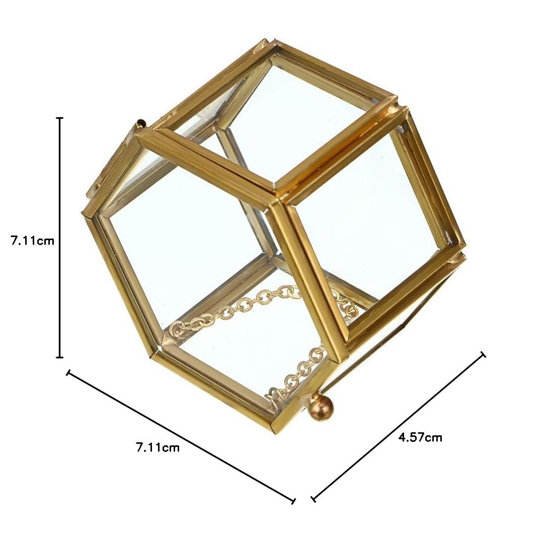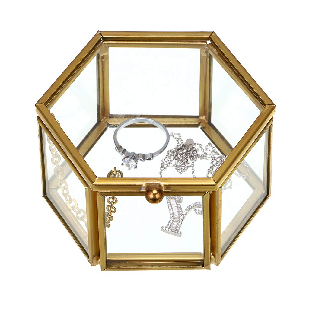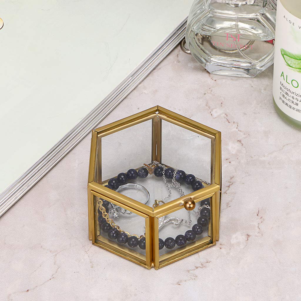 Hipiwe Vintage-Schmuckschatulle aus Glas – Goldene geometrische Schmuck-Display-Organizer, Andenken-Box, dekorative Box für Zuhause, zur Aufbewahrung von Schmuckstücken, Ringen, Ohrringen (klein)