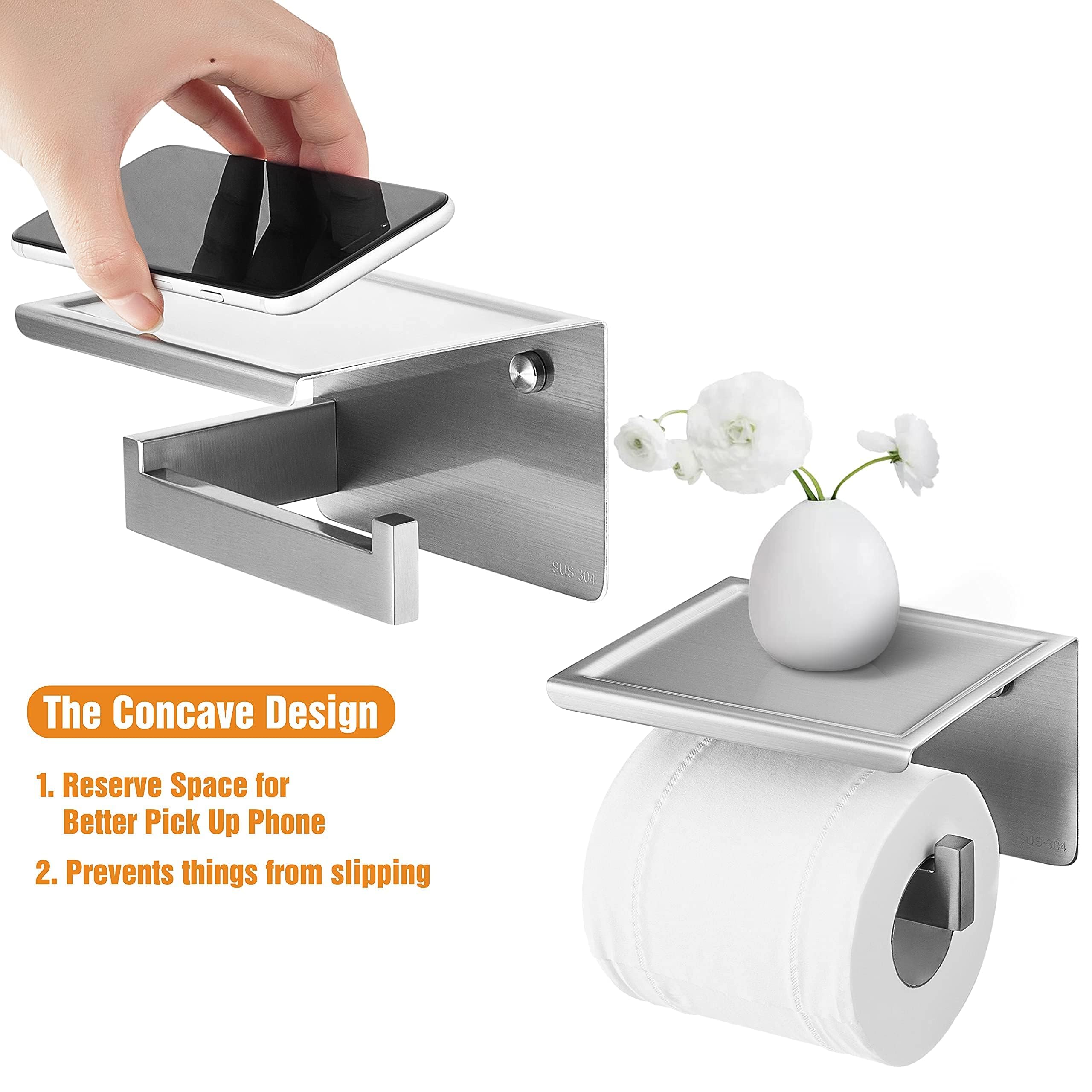 toilettenpapierhalter klopapierhalter mit ablage ohne bohren silber edelstahl matt kleben selbstklebend wandmontage
