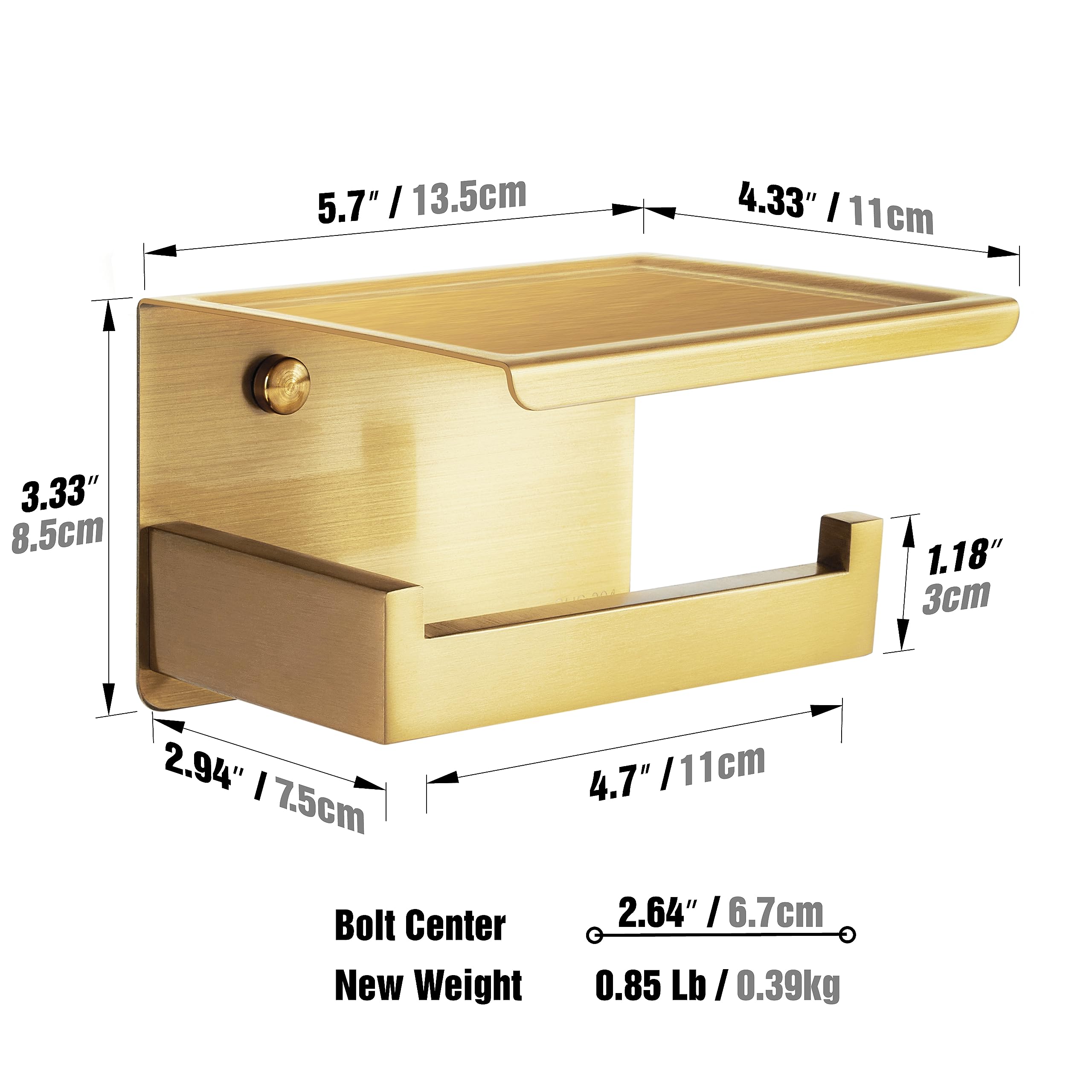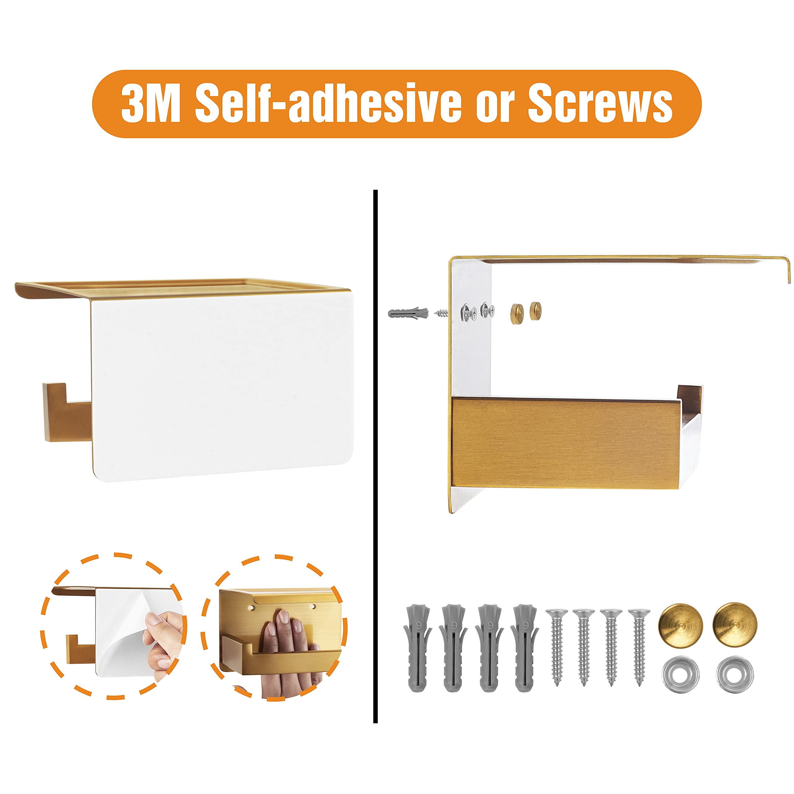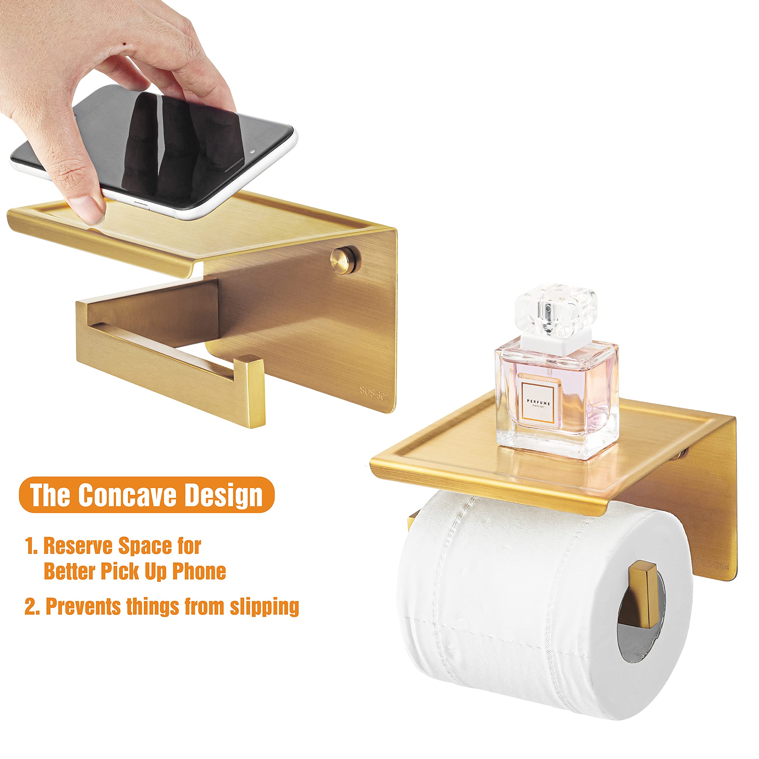 HITSLAM Toilettenpapierhalter Ohne Bohren, Selbstklebend Klopapierhalter mit Ablage, Edelstahl Klorollenhalter Wandmontage, Wc Papier Halterung Rollenhalter mit Kleber für Badzimmer Gold