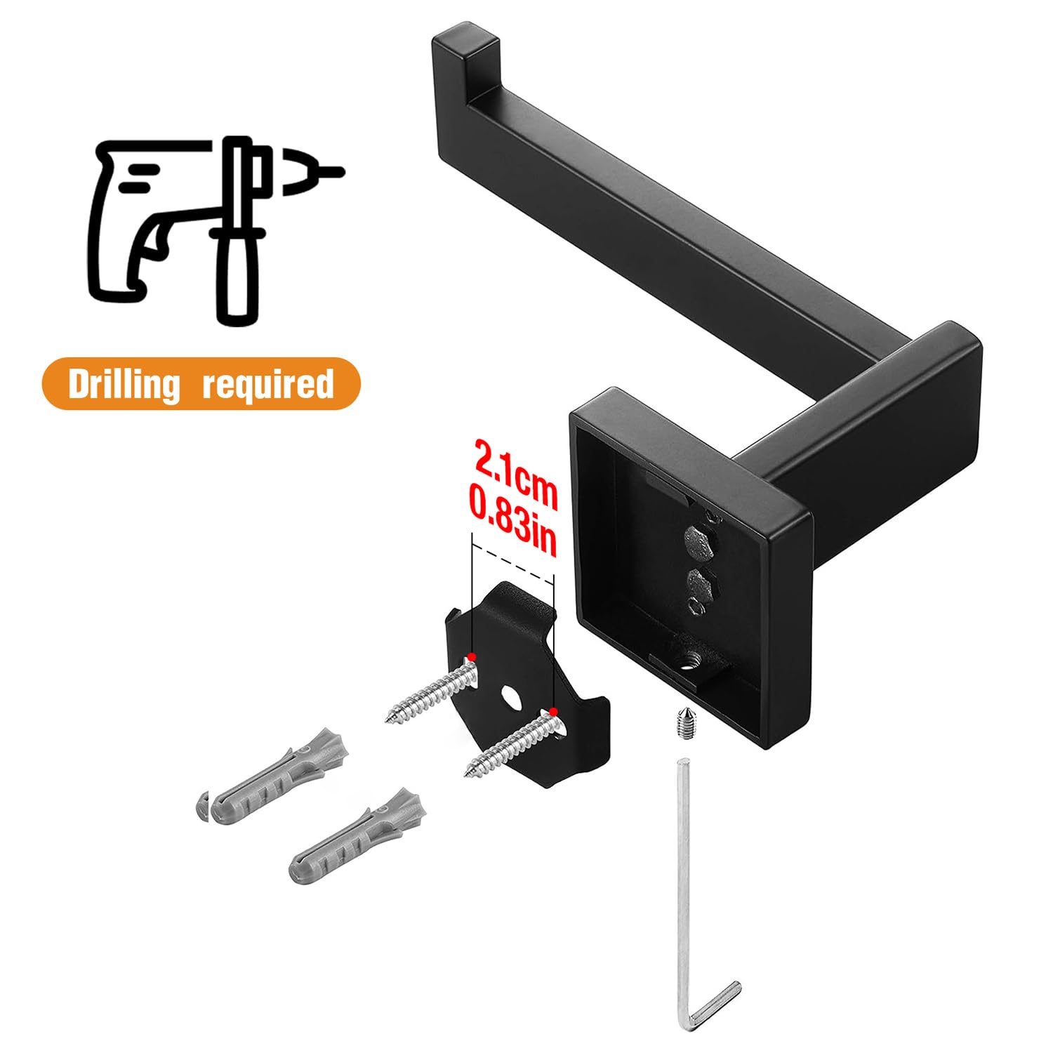 HITSLAM Toilettenpapierhalter Schwarz Matt mit Bohren Edelstahl 304 Klopapierhalter für Küche und Badzimmer Toilette Toilettenpapier Quadrat WC Papier Halterung Rostfrei Klopapierhalter 2er Pack