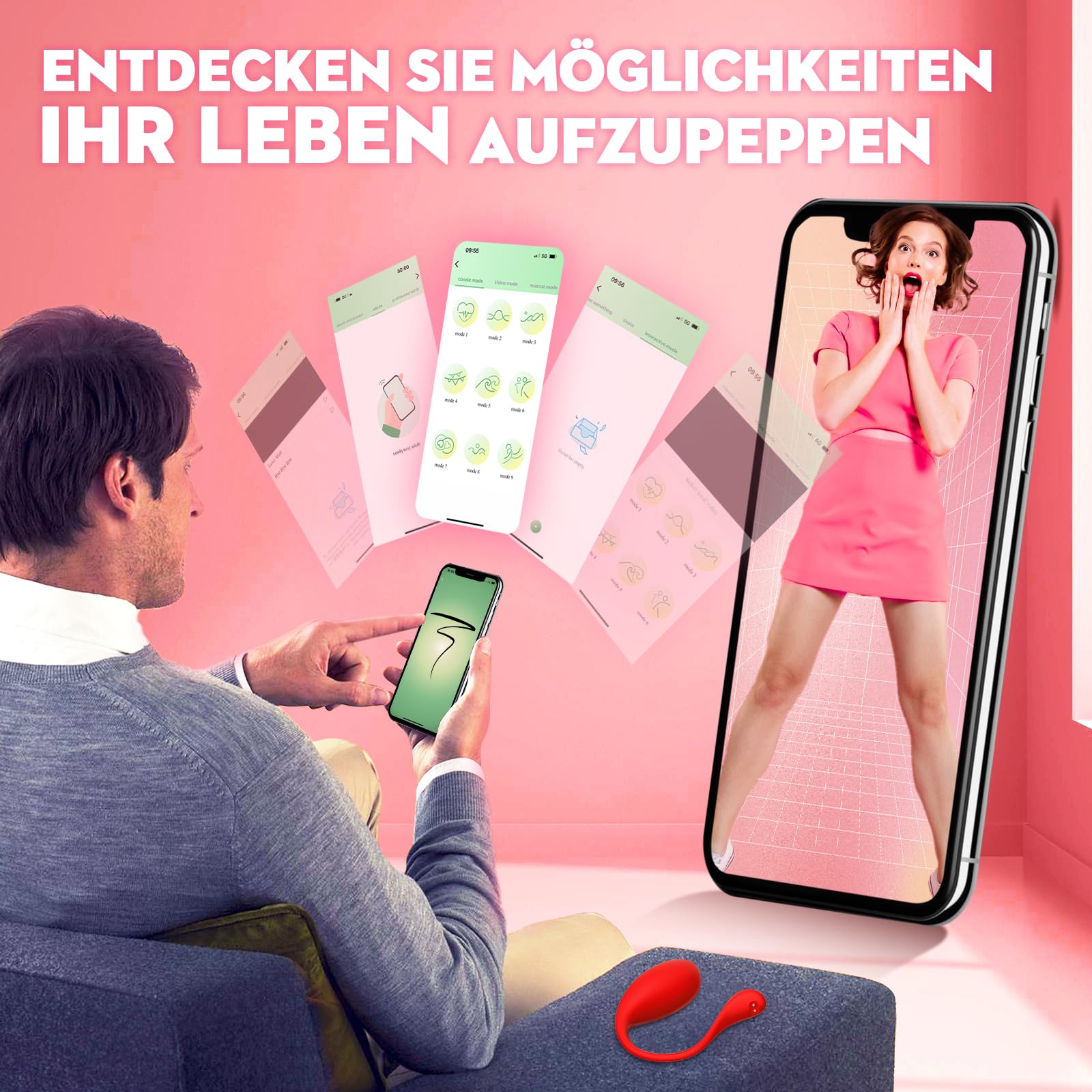 • Vibro Ei mit Fernsteuerung Sex Spielzeug: Tauchen Sie ein in ein intensives Vergnügen mit unserem sex spielzeug für die paare, das drahtlose Fernsteuerungsmöglichkeiten über Bluetooth mit der App bietet - kompatibel mit iOS und Android. Mit 9 Vibrationsmodi und 6 App-Modi, einschliesslich Video-, Musik- und interaktiven Modi, können Sie Ihre Erfahrung individualisieren. Die App-Kontrolle ermöglicht es Ihnen, Ihr Vergnügen diskret zu steuern, sogar von weiter weg, für noch aufregendere