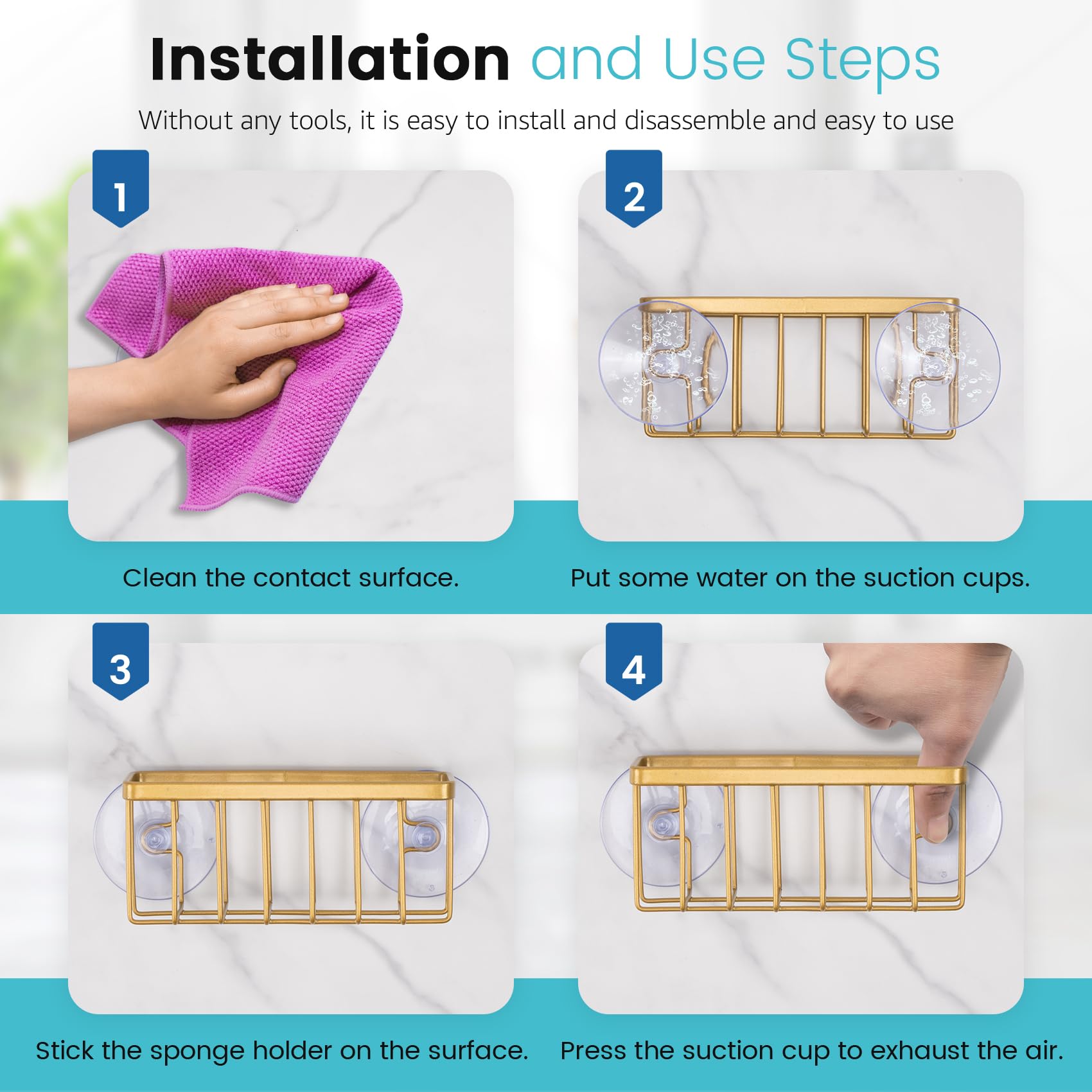 HLOOL Goldfarbener Schwammhalter für Küchenspüle, Küchenspüle, Schwammhalter, Küchenspüle, Organizer, goldfarbenes Küchenzubehör (Gold)