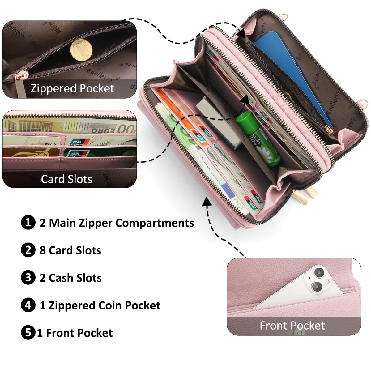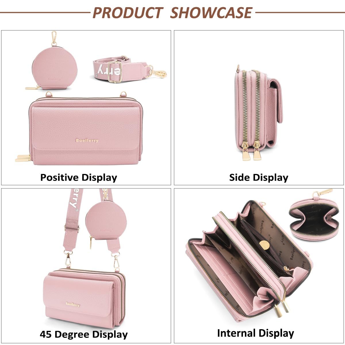HNOOM Handy Schultertasche Brieftasche Klein Crossbody Tasche Handy Geldbeutel Handytasche Geldbörse mit 8 Kartenfächer, Breitem Schultergurt