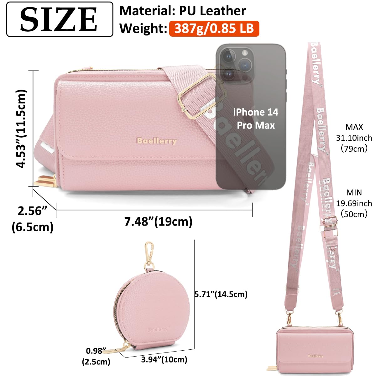 HNOOM Handytasche zum Umhängen Kleine Handy Umhängetasche Damen PU Leder Handytasche mit Geldbörse zum Umhängen Crossbody Schultertasche mit Kartenfächer, Verstellbarem Schultergurt (Rosa)