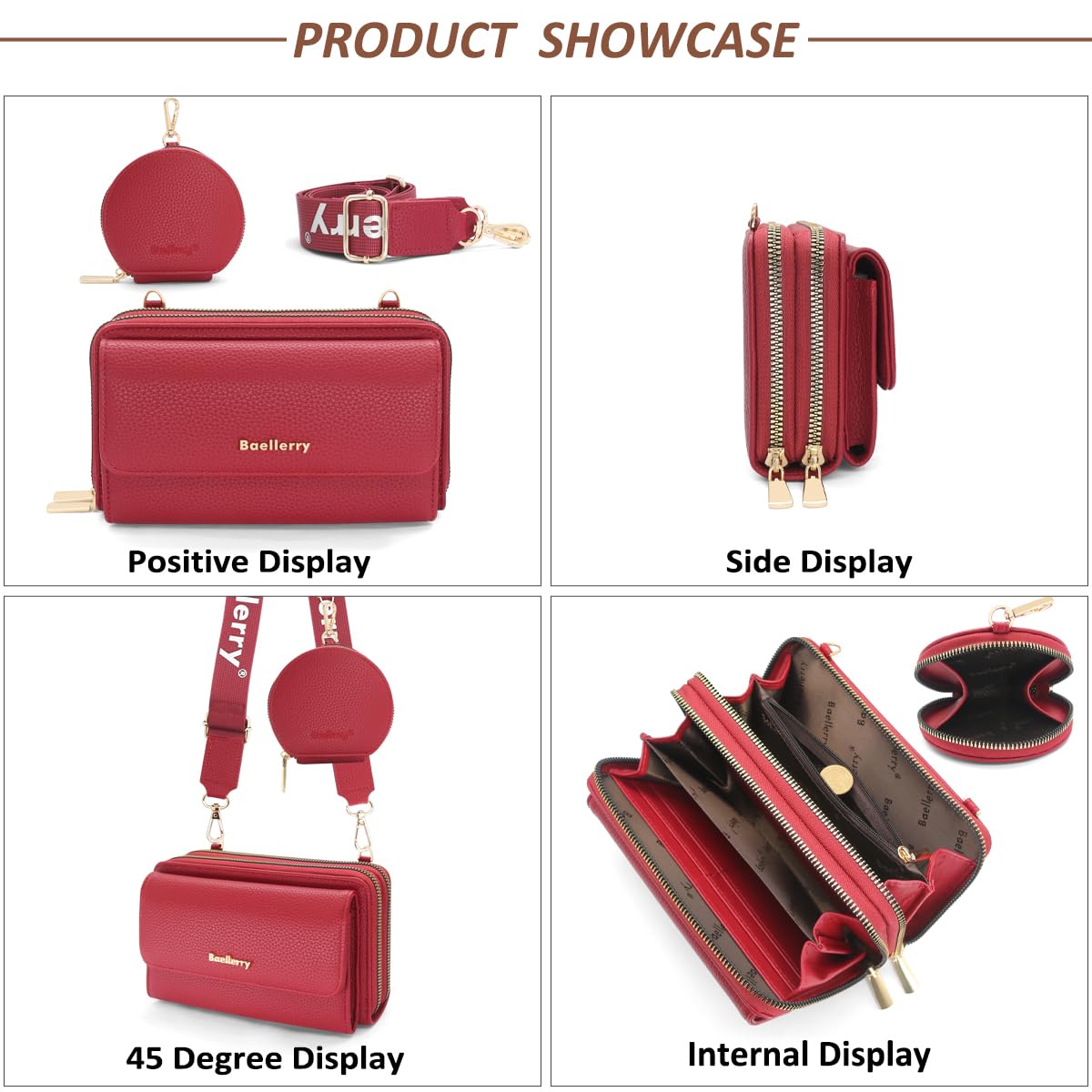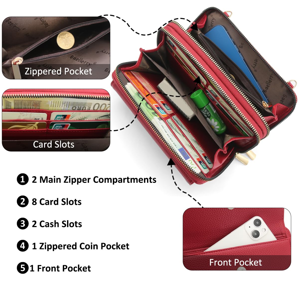 HNOOM Handy Schultertasche Brieftasche Klein Crossbody Tasche Handy Geldbeutel Handytasche Geldbörse mit 8 Kartenfächer, Breitem Schultergurt