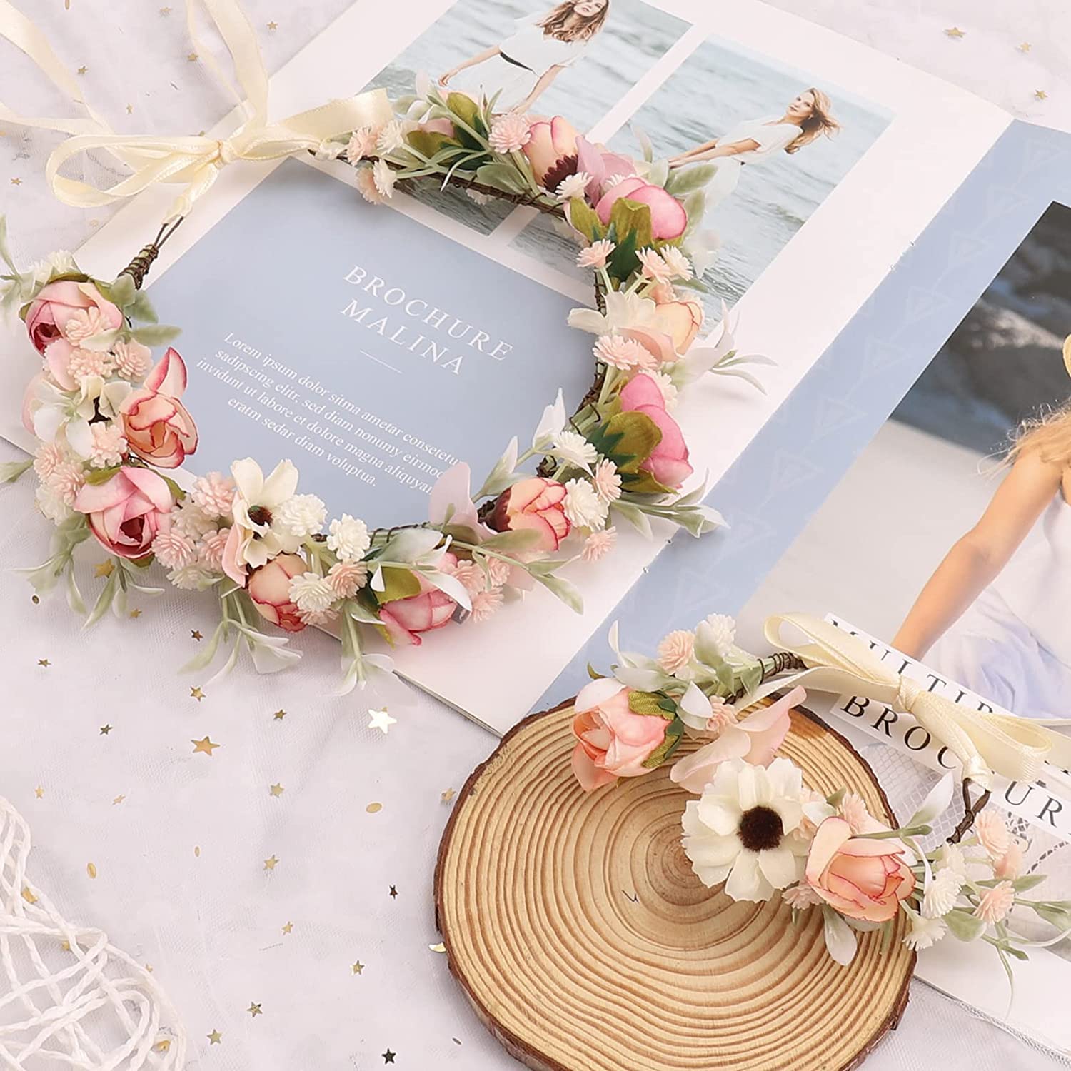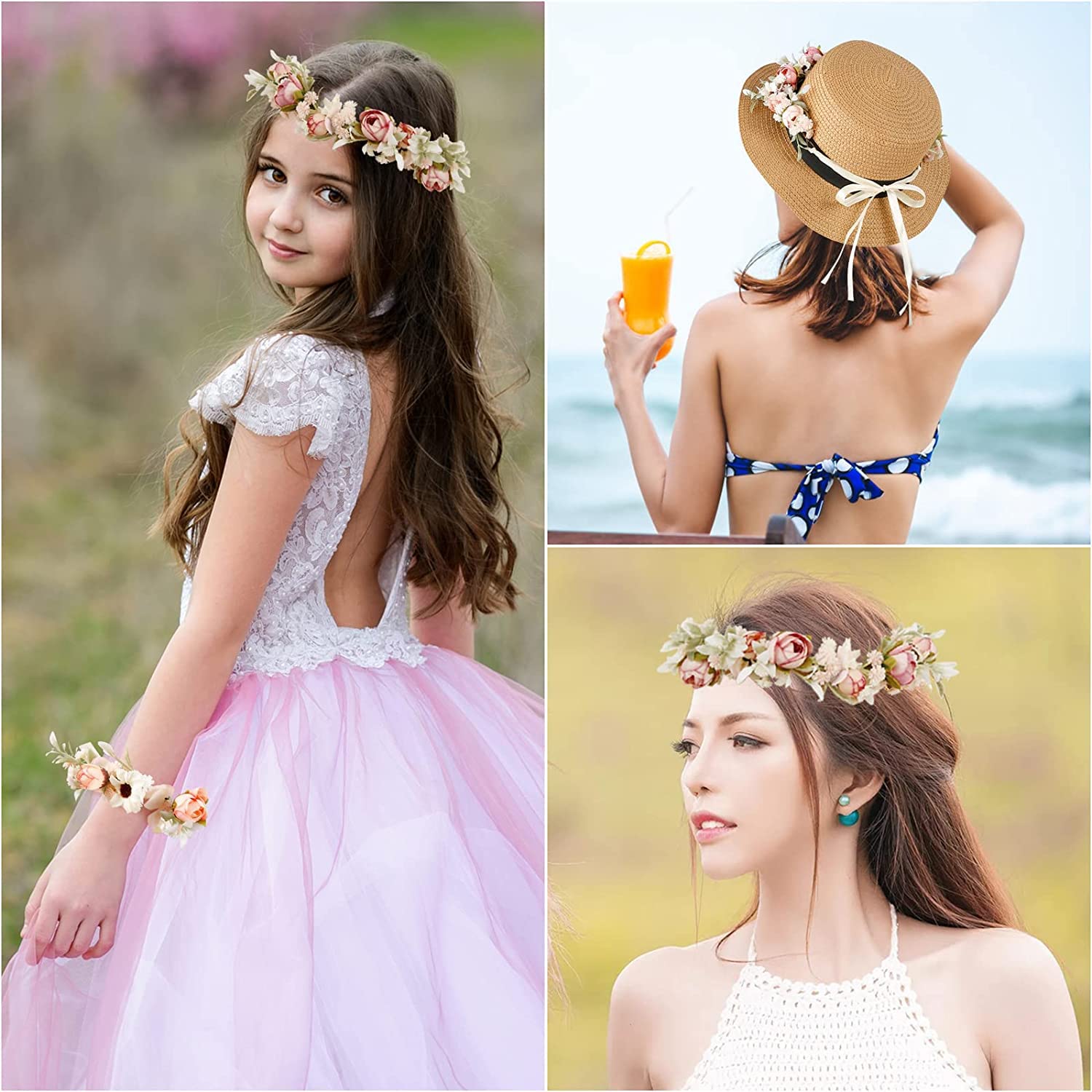 Das Set beinhaltet: 1 x Hochzeitsgirlande, Blumenkranz, für Damen. 1 x Rosa-Armband.