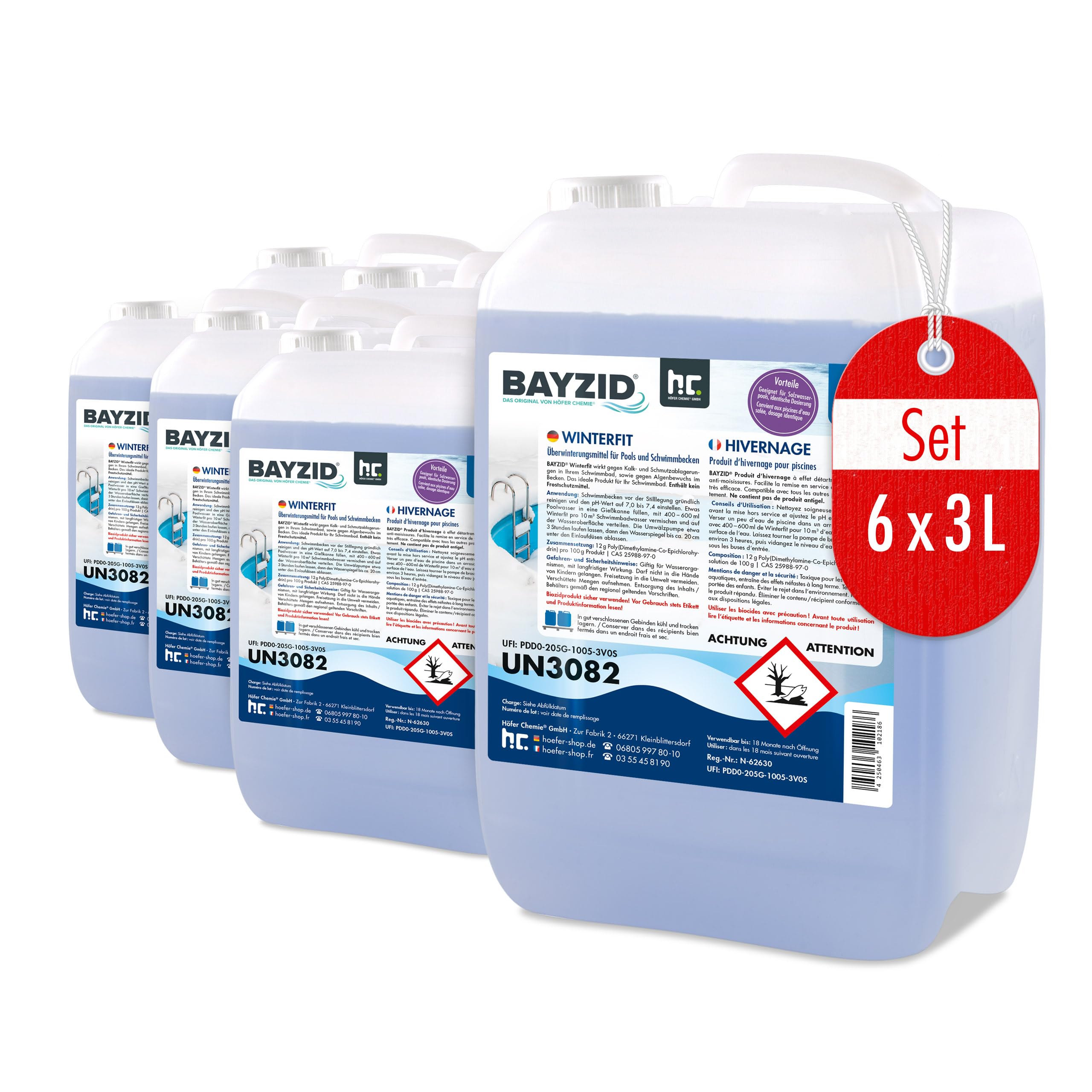 Mindestanzahl für die Bestellung von "Höfer Chemie 6 x 3 L Pool Wintermittel - BAYZID Winterfit Überwinterungskonzentrat für Schwimmbad und Pool von Höfer Chemie" ist 1.