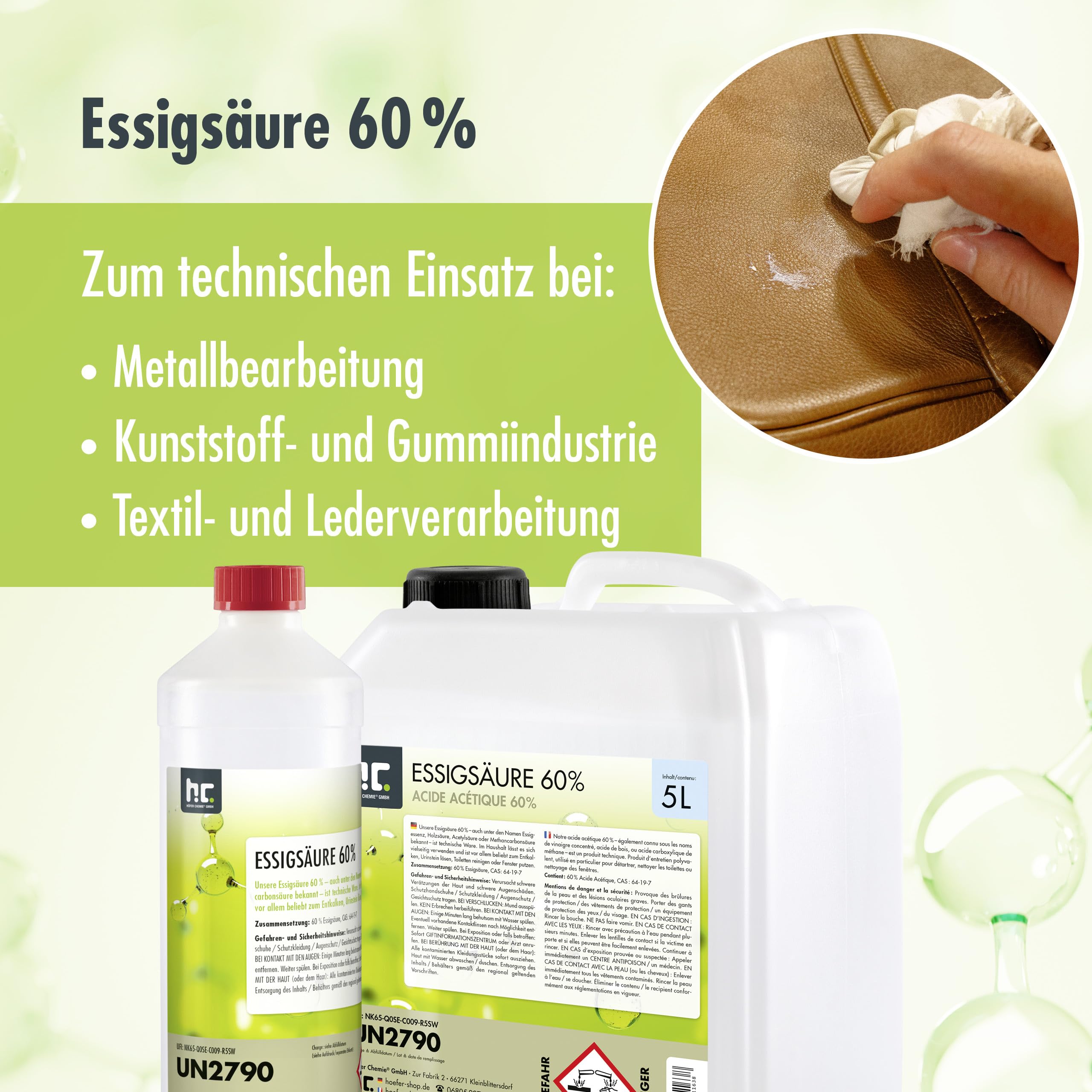 Höfer Chemie 1 L Essigsäure 60% - optimaler Reiniger und Entkalker - Premium Qualität Made in Germany