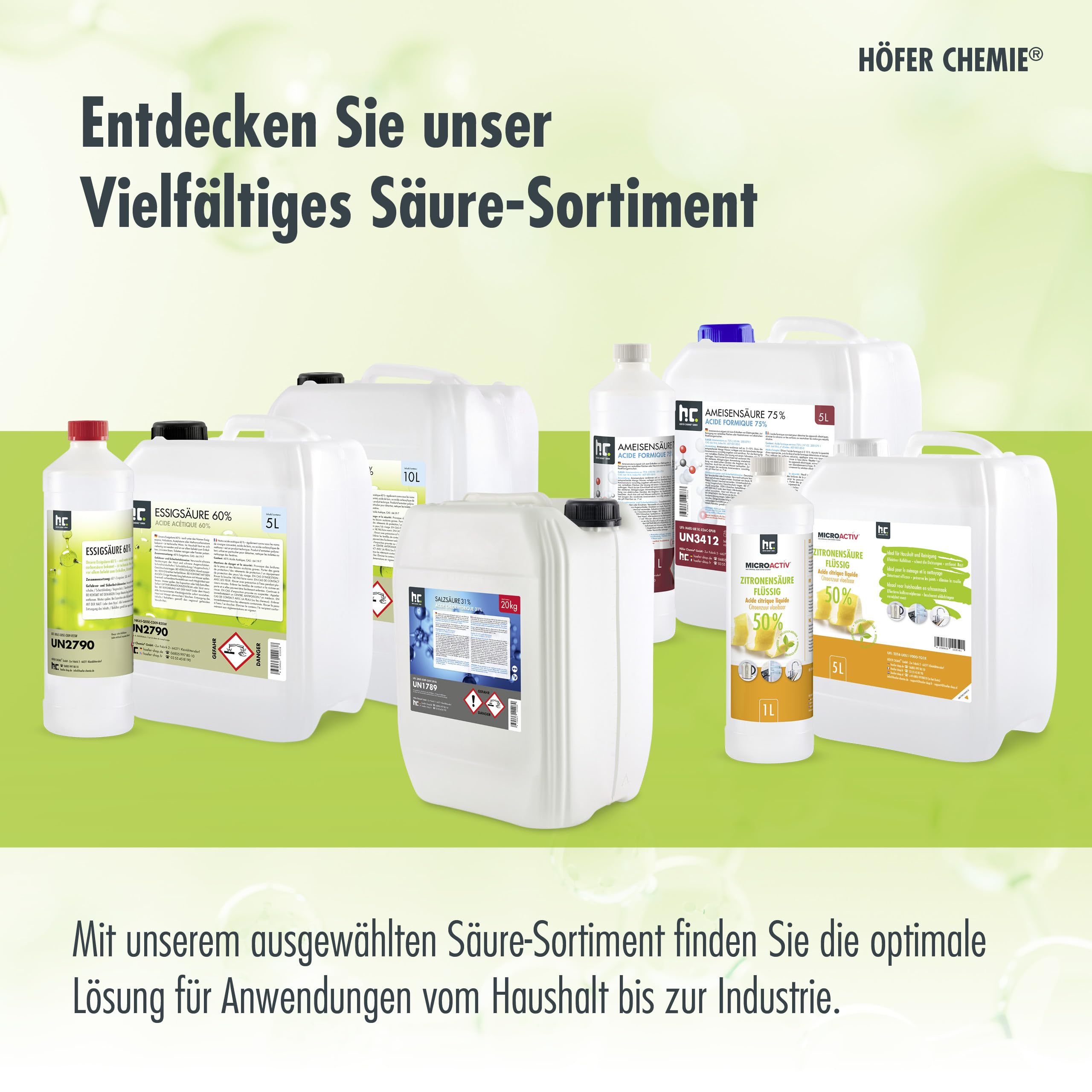 Höfer Chemie 15x 1 L Essigsäure 60% - optimaler Reiniger und Entkalker - Premium Qualität Made in Germany