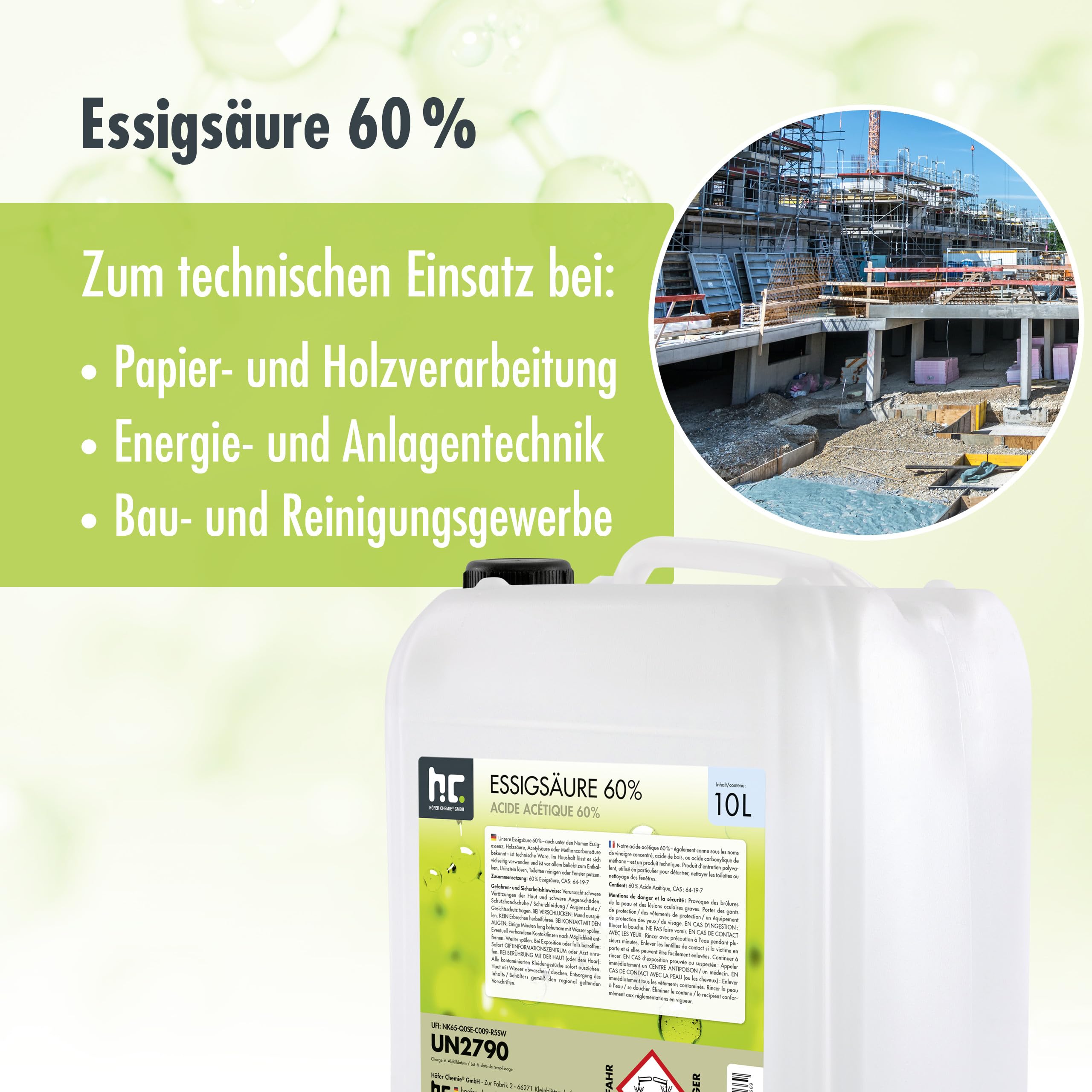 Höfer Chemie 2 x 10 L Essigsäure 60% - optimaler Reiniger und Entkalker - Premium Qualität Made in Germany - frisch abgefüllt im handlichen Kanister