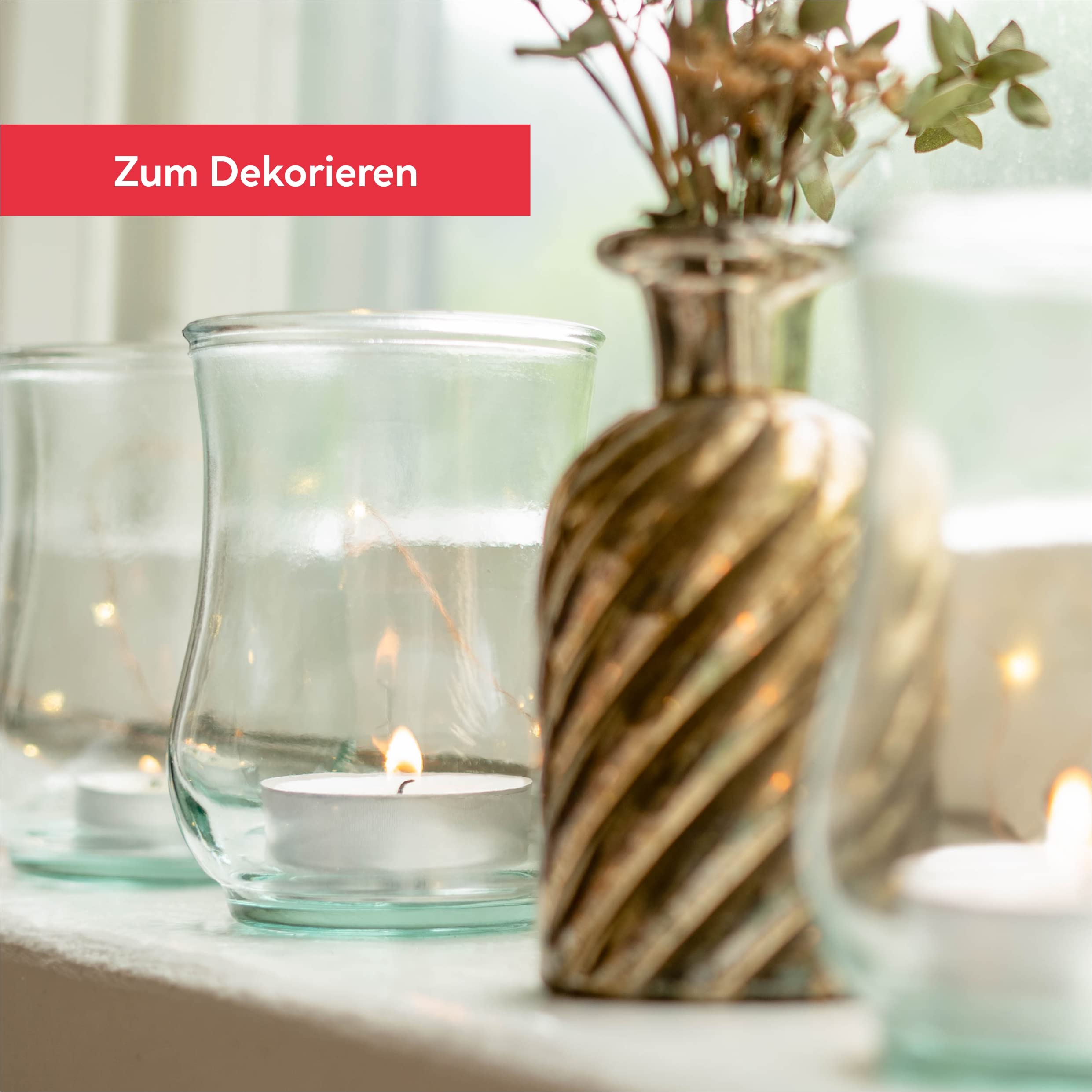 • ????️ PROBLEMLOSES WIEDERANZÜNDEN – Die Teelichter können mehrfach angezündet werden. Der Dochthalter aus Metall sorgt dafür, dass der Docht weder umkippen noch ertrinken kann. Wenn das Wachs verbraucht ist, erlischt der Docht von selbst.