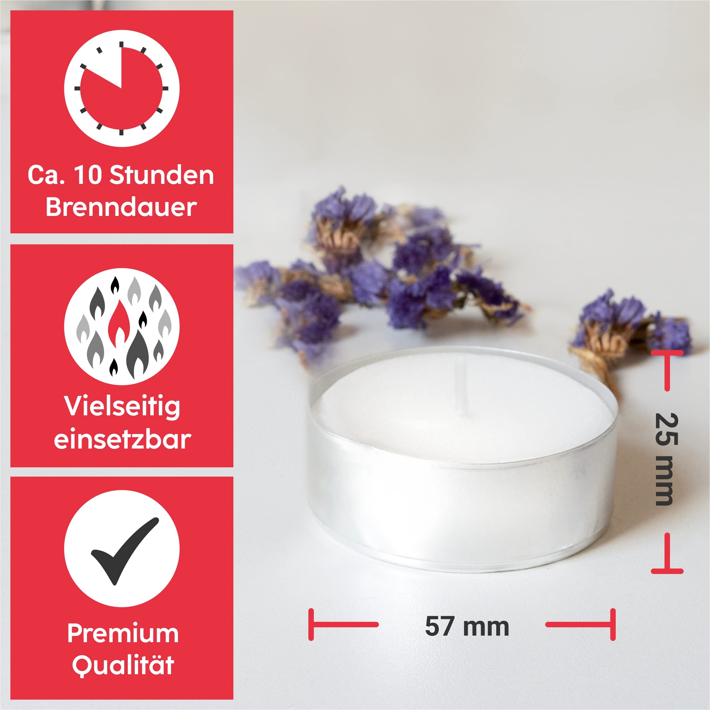 • ????️ FÜR DIE STIMMUNGSVOLLE ATMOSPHÄRE – Ob für die Tischdeko, für Teelichthalter, Stövchen, Duftlampen oder Windlichter - die Teelichter können durch ihre unkomplizierte Verwendungsmöglichkeit vielfältig eingesetzt werden.