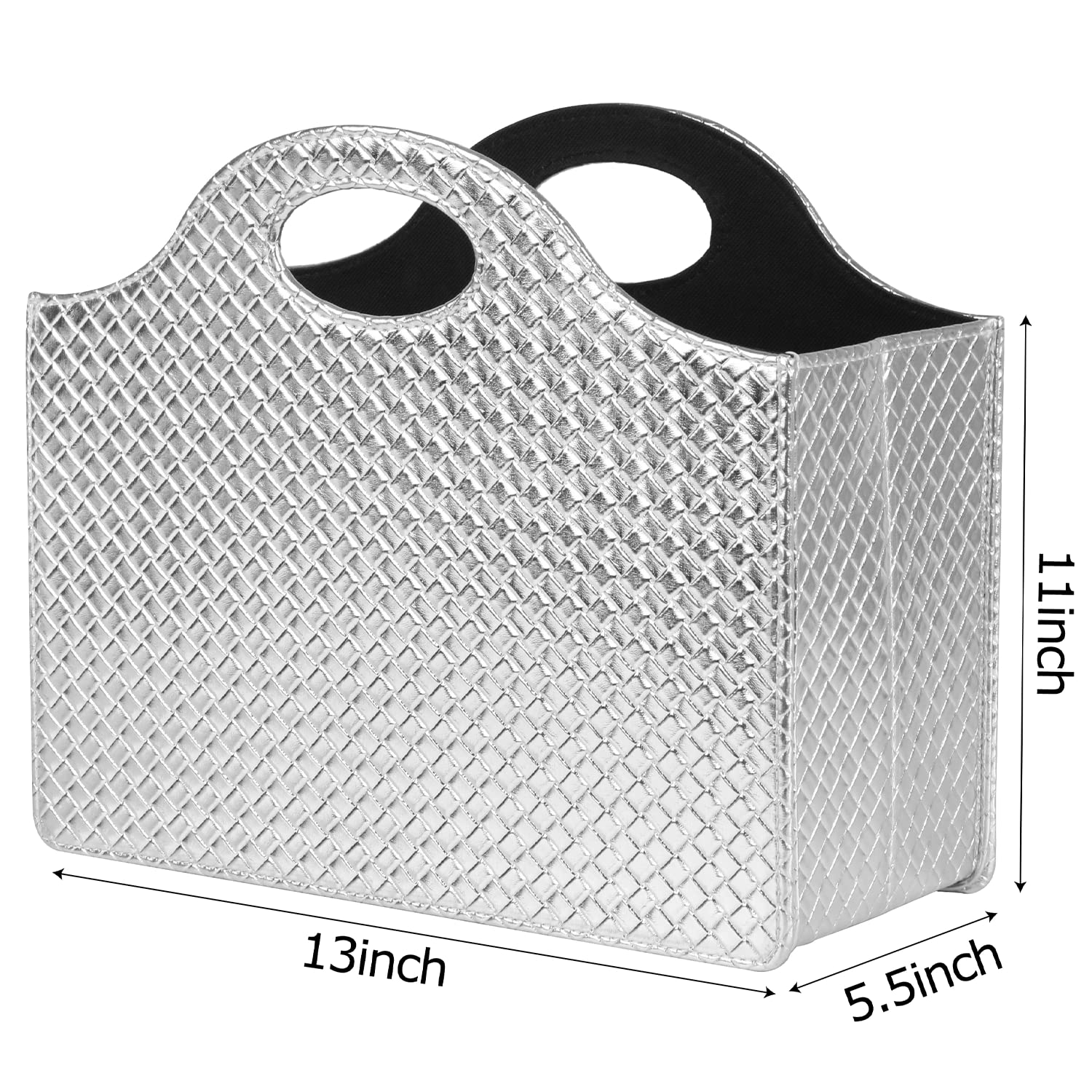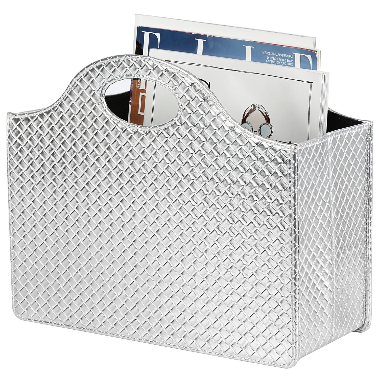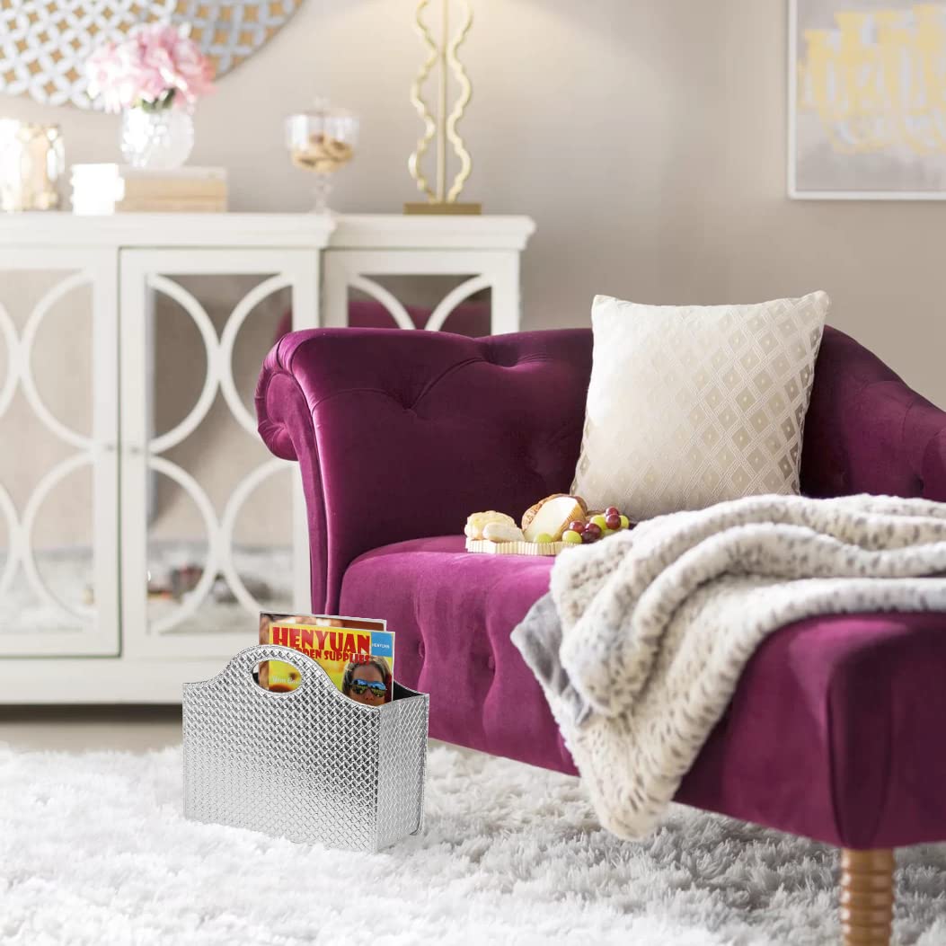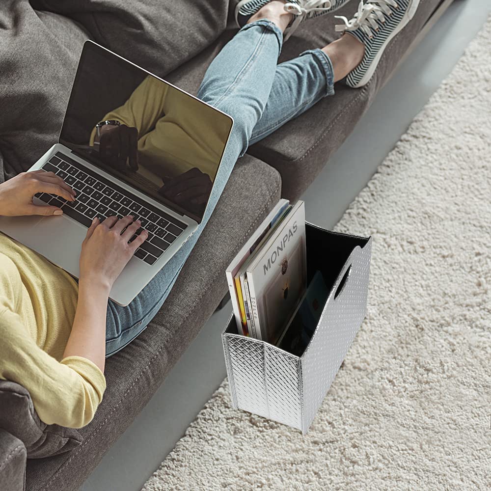 HofferRuffer Zeitschriftenhalter mit Griff, faltbarer Zeitschriftenständer aus PU-Leder, Dokumentenhalter, Zeitschriftenkorb, Zeitungsaufbewahrung für Büro, Couchtisch, Wohnzimmer, Rezeption (Silber)