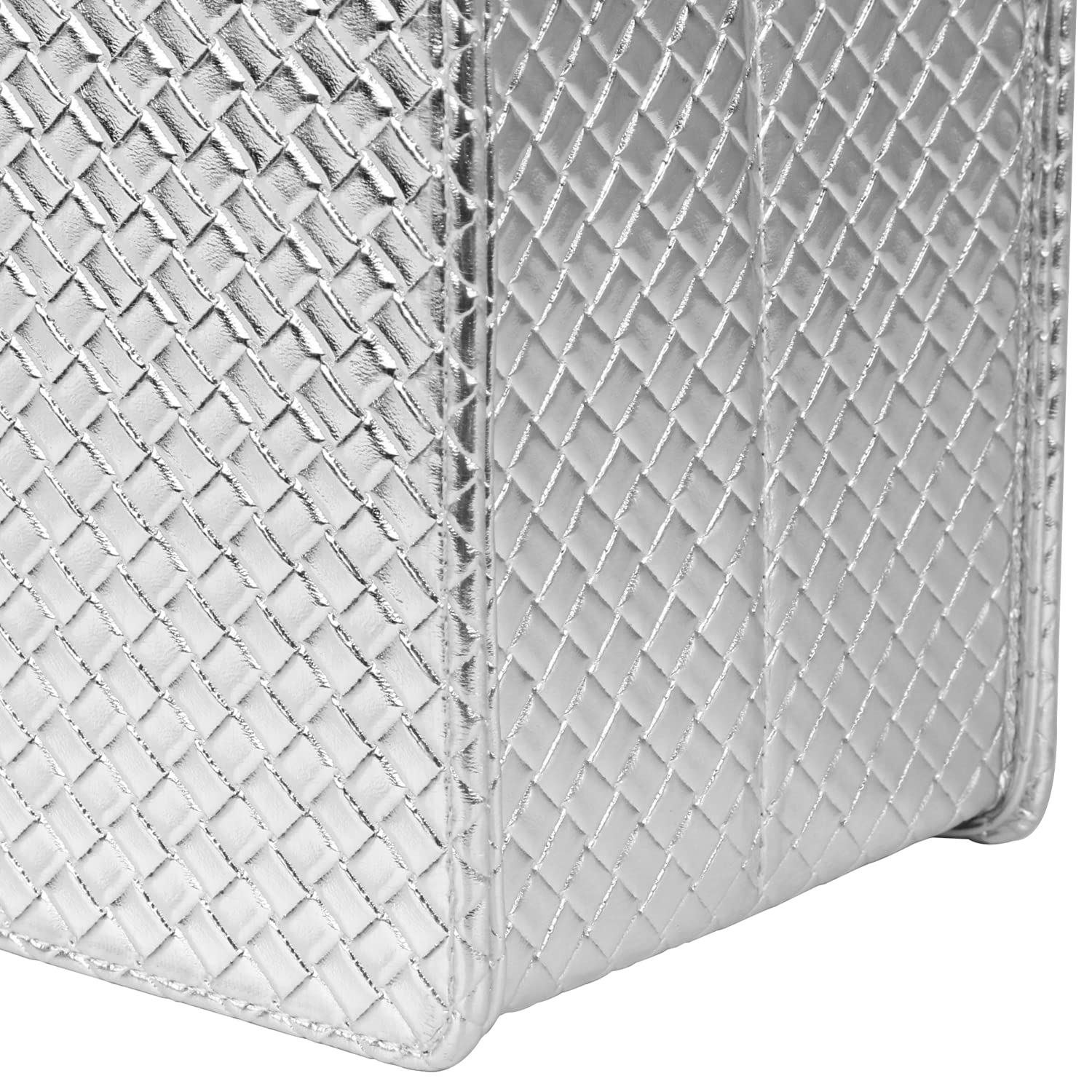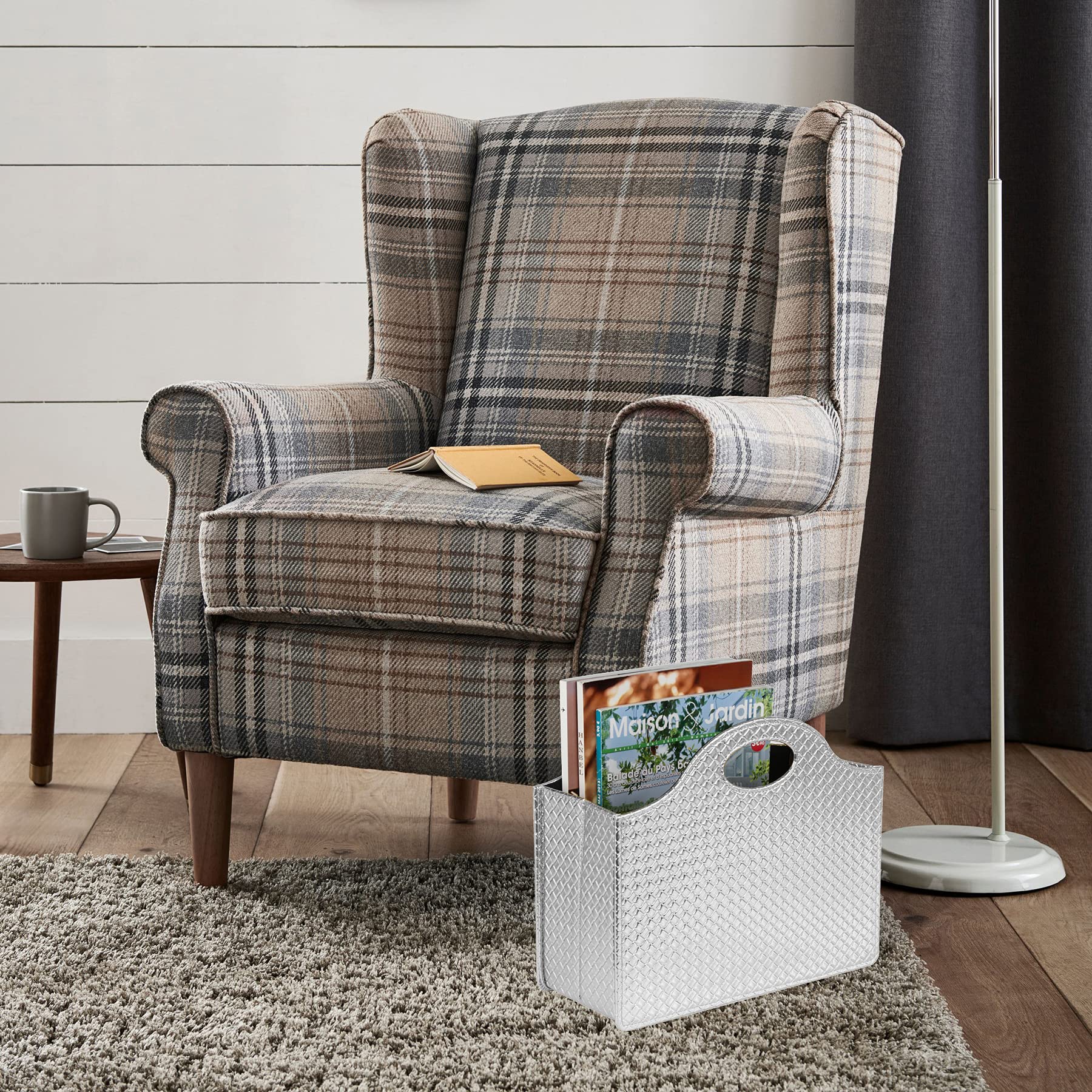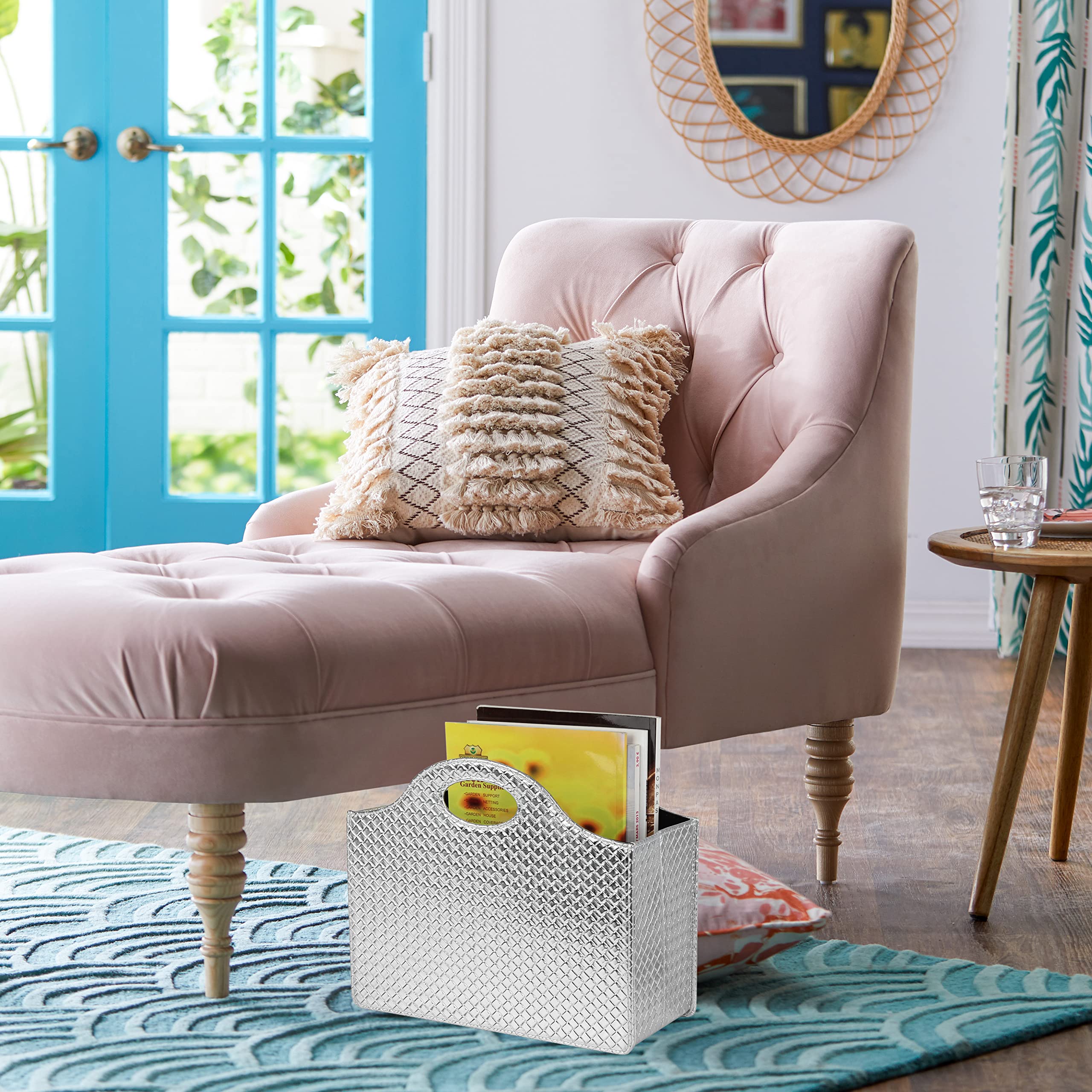 HofferRuffer Zeitschriftenhalter mit Griff, faltbarer Zeitschriftenständer aus PU-Leder, Dokumentenhalter, Zeitschriftenkorb, Zeitungsaufbewahrung für Büro, Couchtisch, Wohnzimmer, Rezeption (Silber)