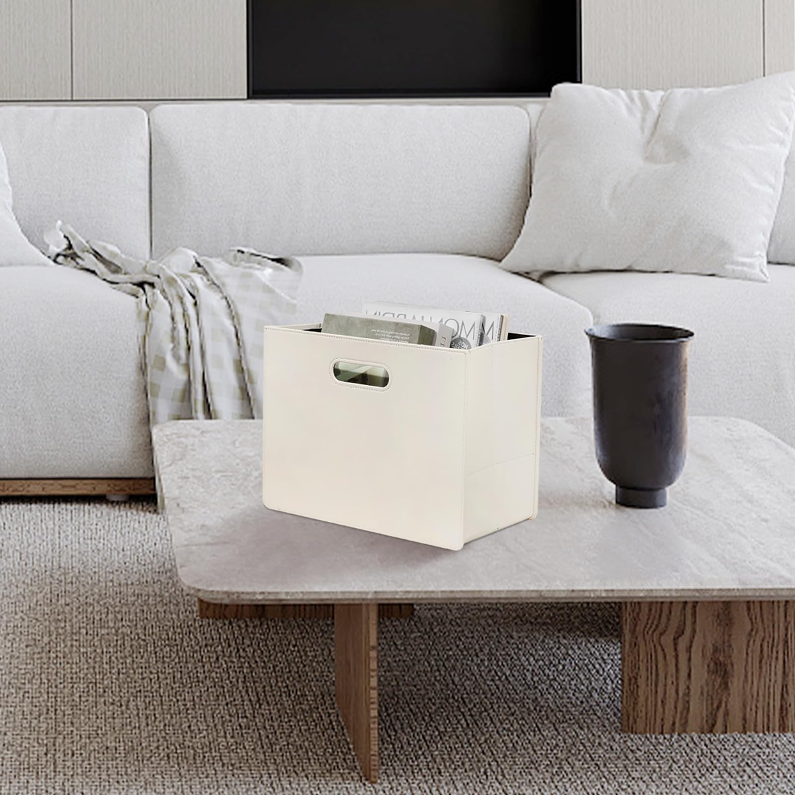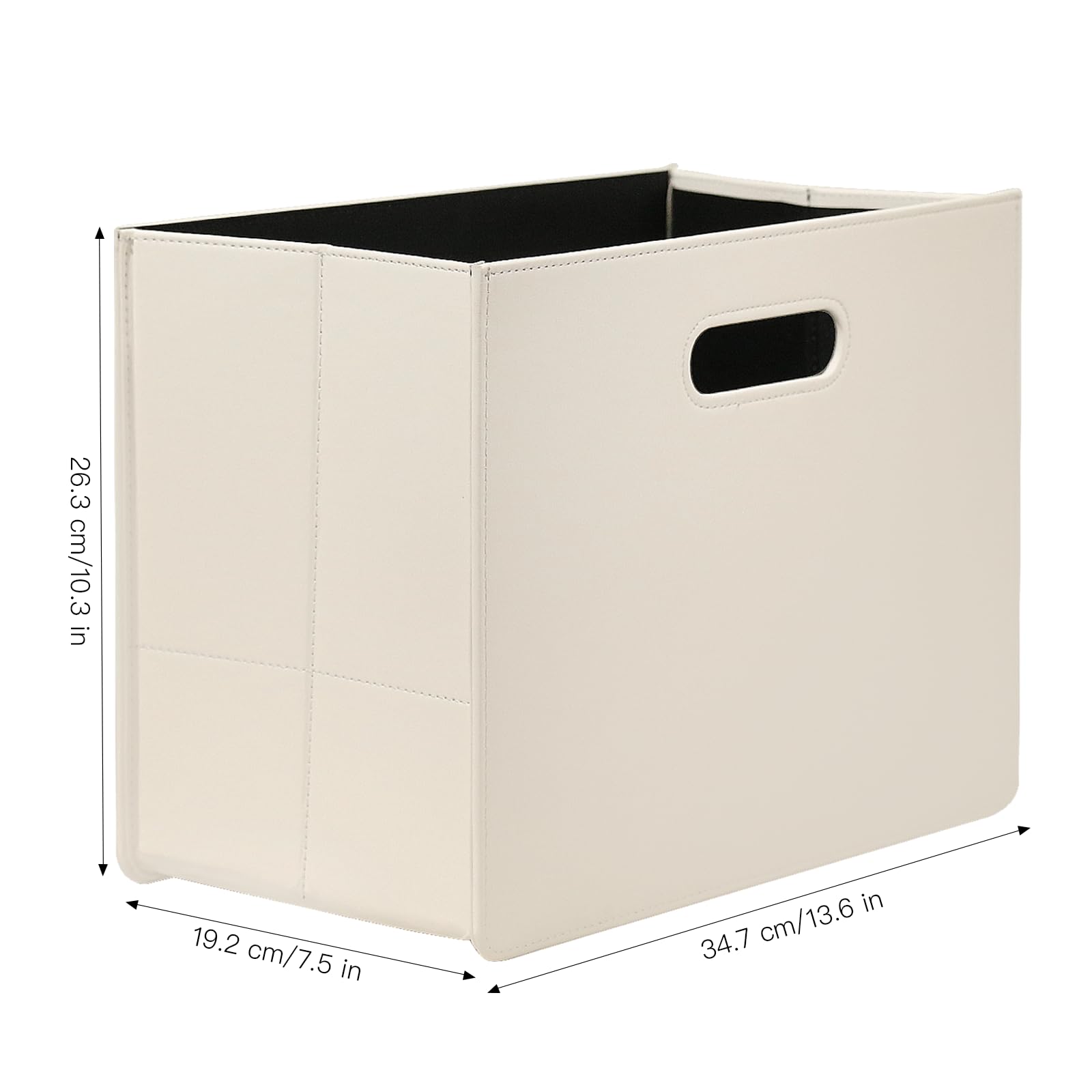 HofferRuffer Zeitungskorb aus Leder mit Griff, Zusammenklappbarer Zeitschriftenkorb Ständer 35 x 19 x 27 cm, Zeitungenaufbewahrung Organizer Weiss