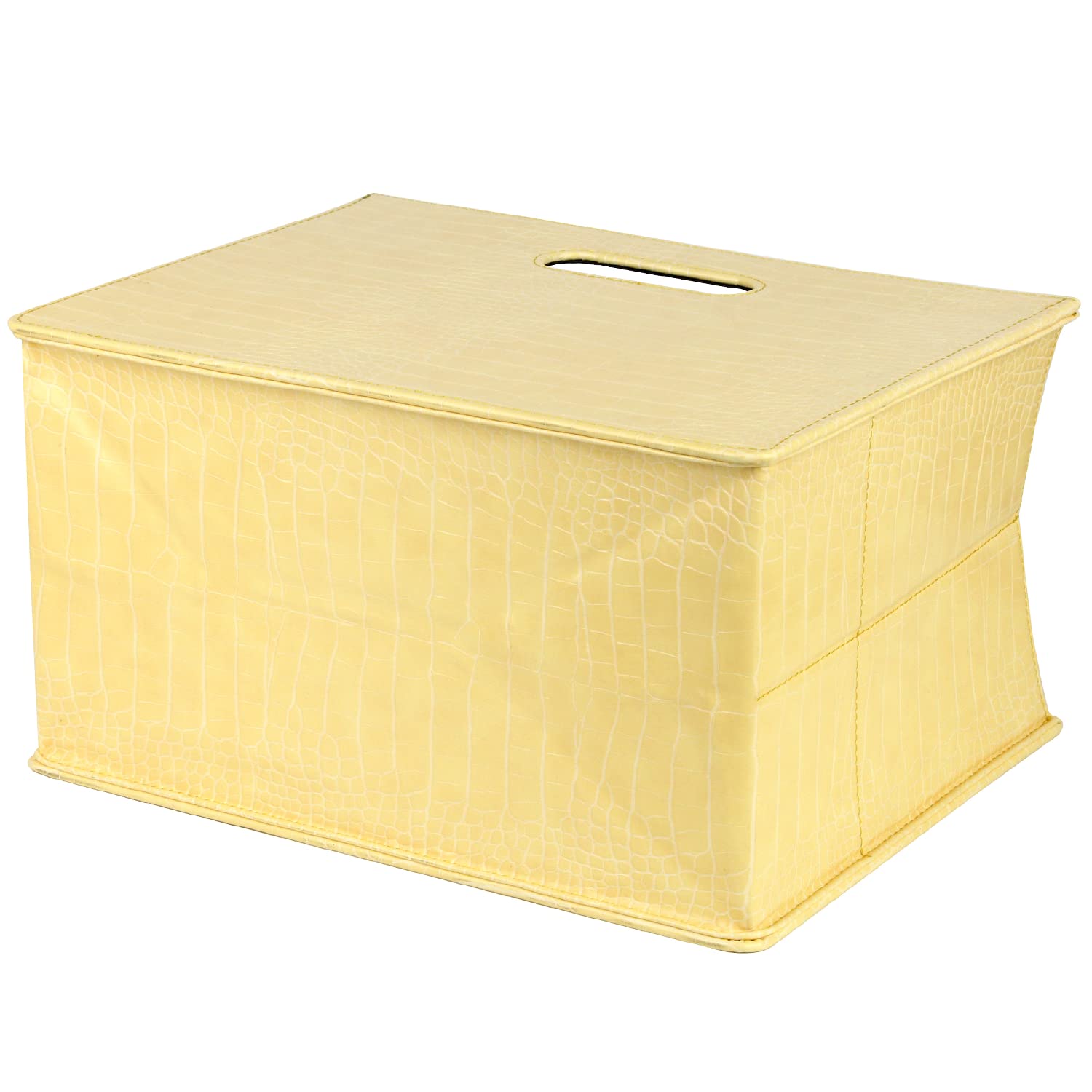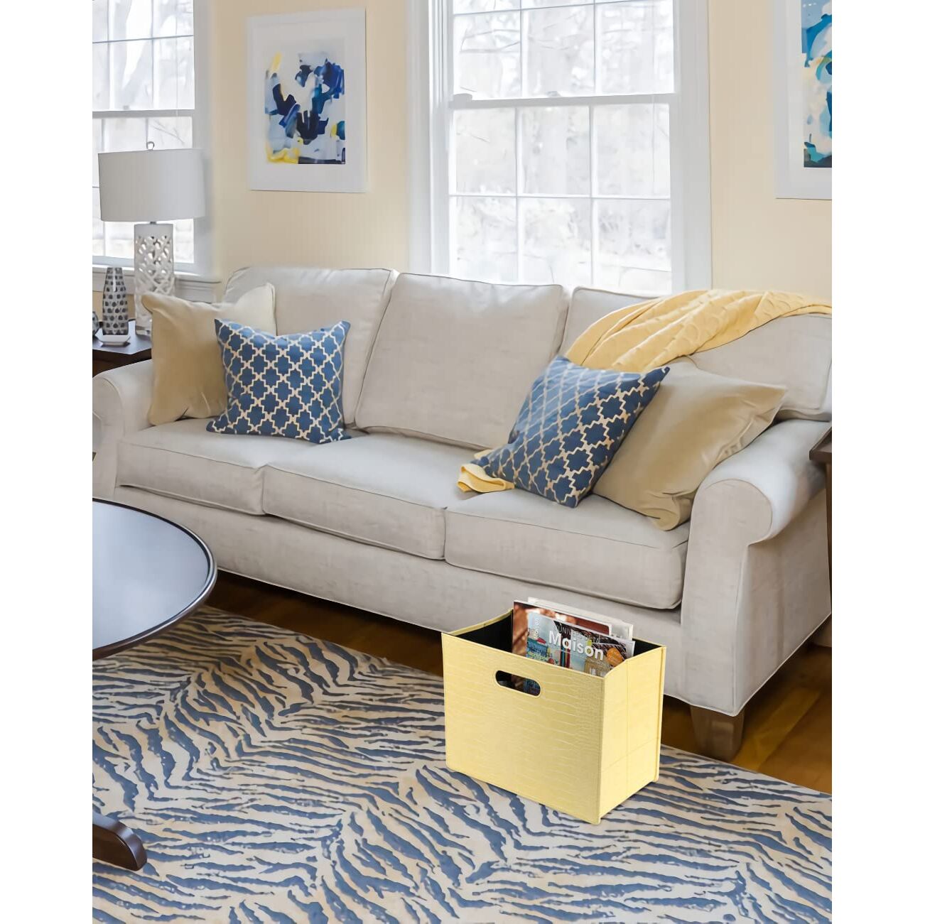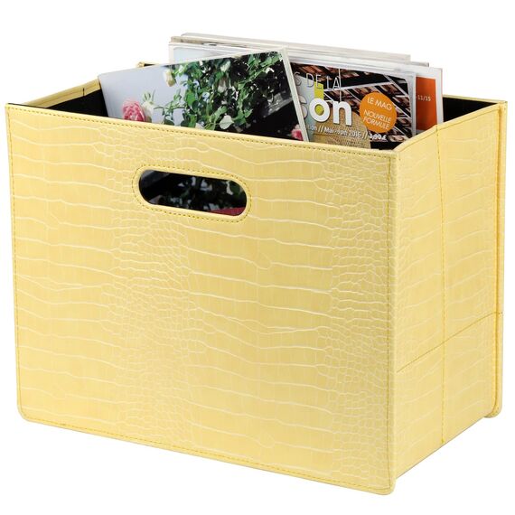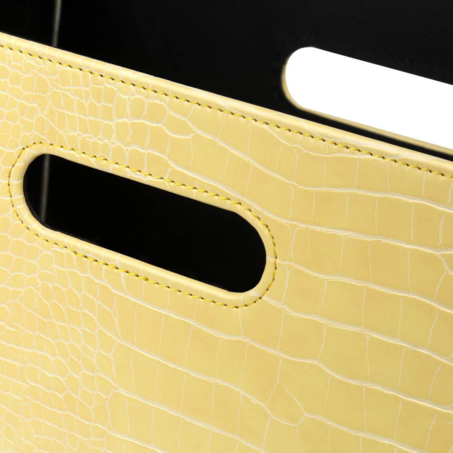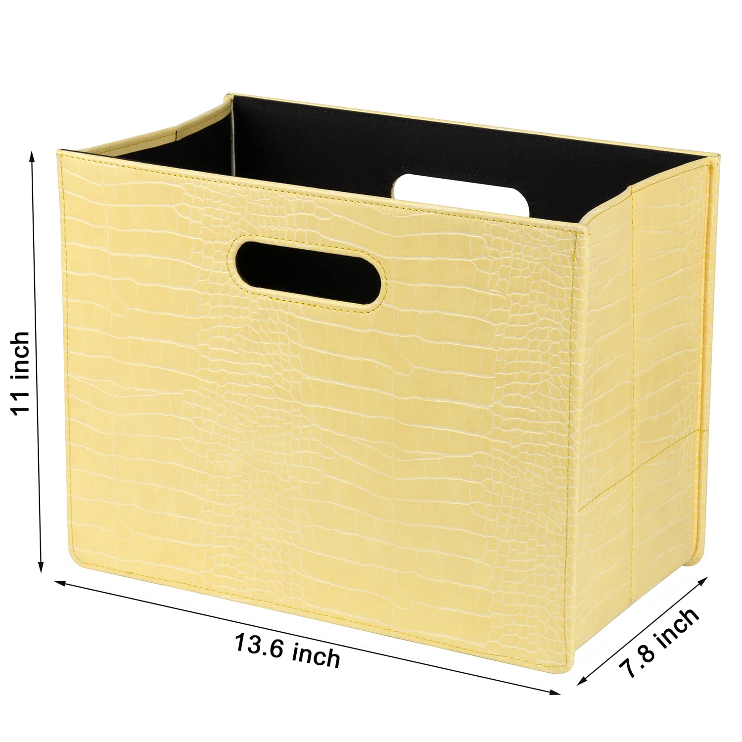 HofferRuffer Zeitschriftenhalter mit Griff, faltbarer Zeitschriftenständer aus PU-Leder, Dokumentenhalter, Zeitschriftenkorb, Zeitungsaufbewahrung für Büro, Couchtisch, Wohnzimmer, Rezeption (Gelb)