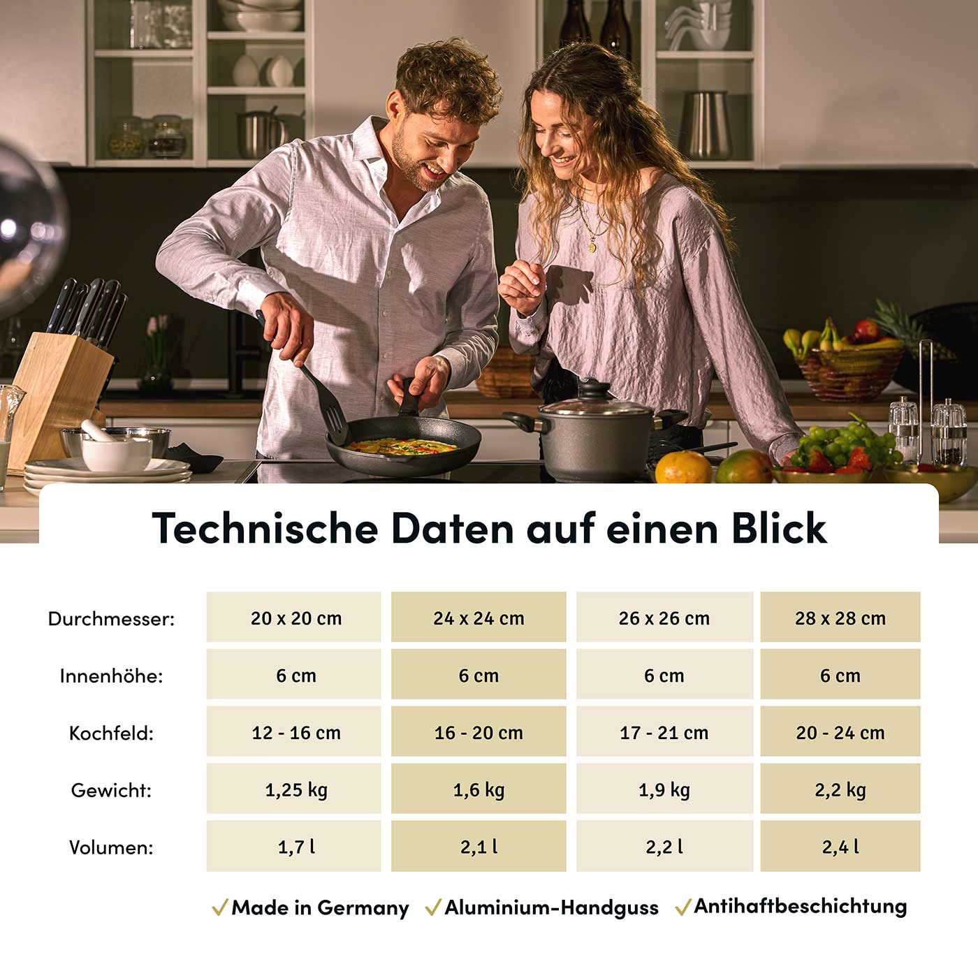 Hoffmann Aluguss Pfanne 28x28 cm Induktion viereckig Hoher Rand I Schmorpfanne Innenhöhe 6 cm I Viereckpfanne beschichtet I Eckpfanne Antihaft Rechteckpfanne ohne Glasdeckel