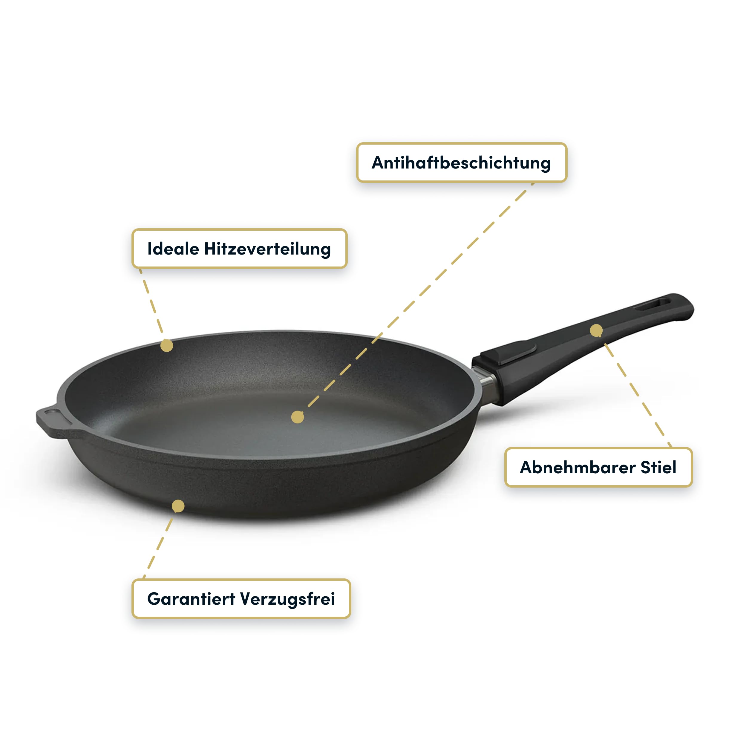 Hoffmann Aluguss Bratpfanne 24cm beschichtet I Abnehmbarer Griff Induktion ohne Glasdeckel