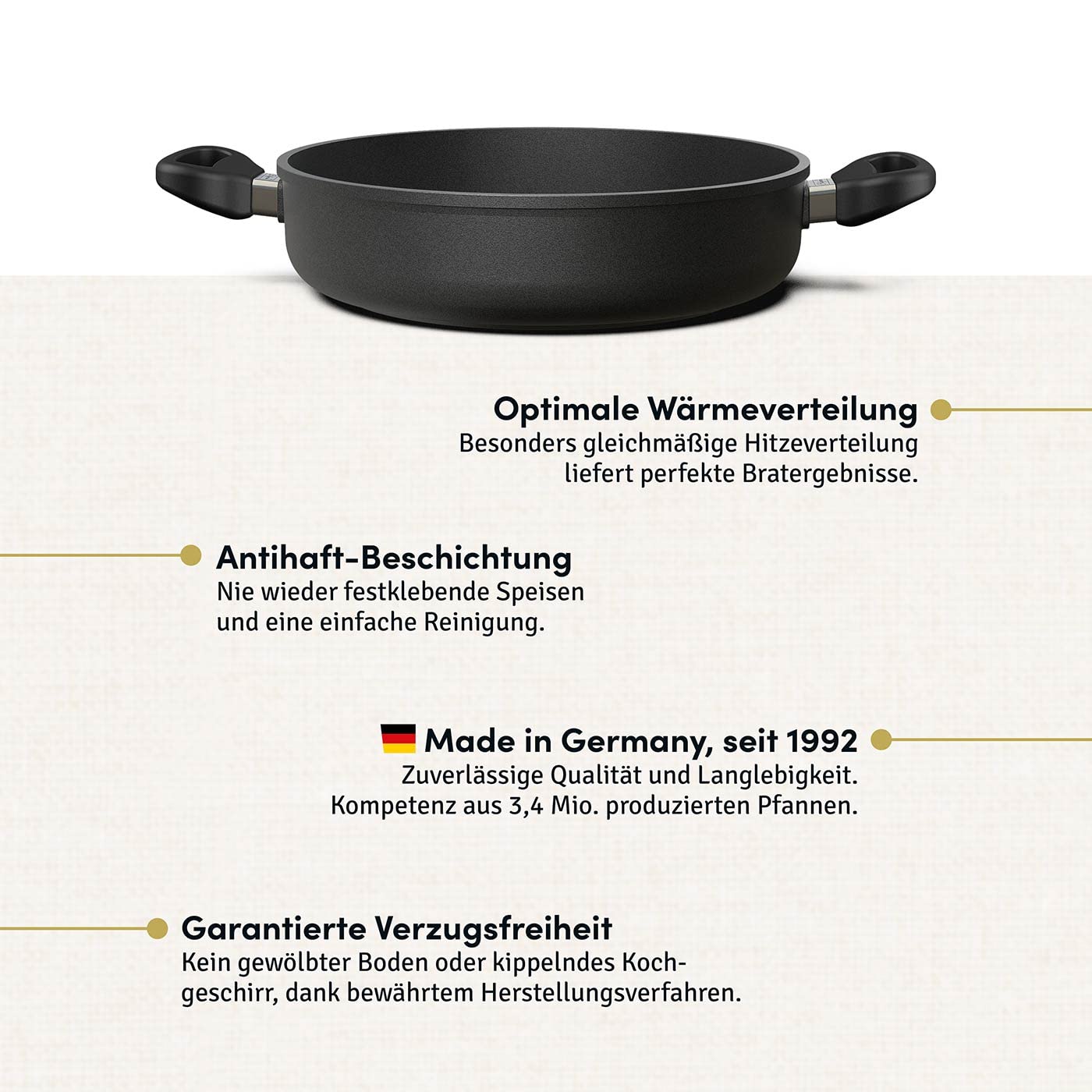 Hoffmann Schmorpfanne 28 cm hoher Rand Induktion I Pfanne mit 2 Griffen Made in Germany I Hochrandpfanne Aluguss Servierpfanne mit Deckel beschichtet