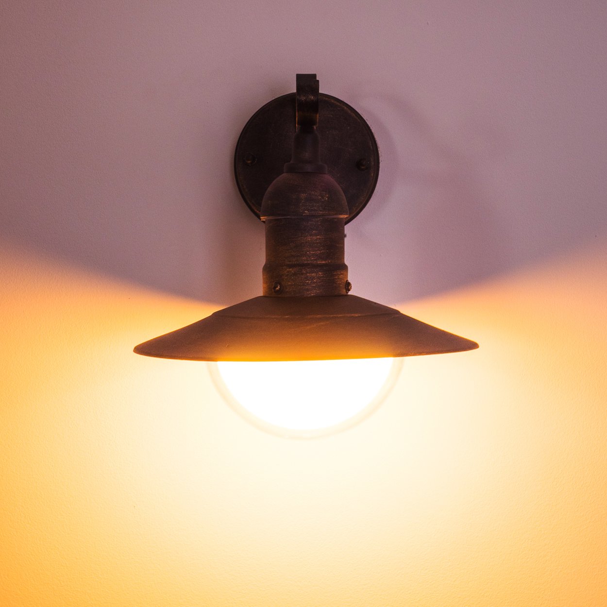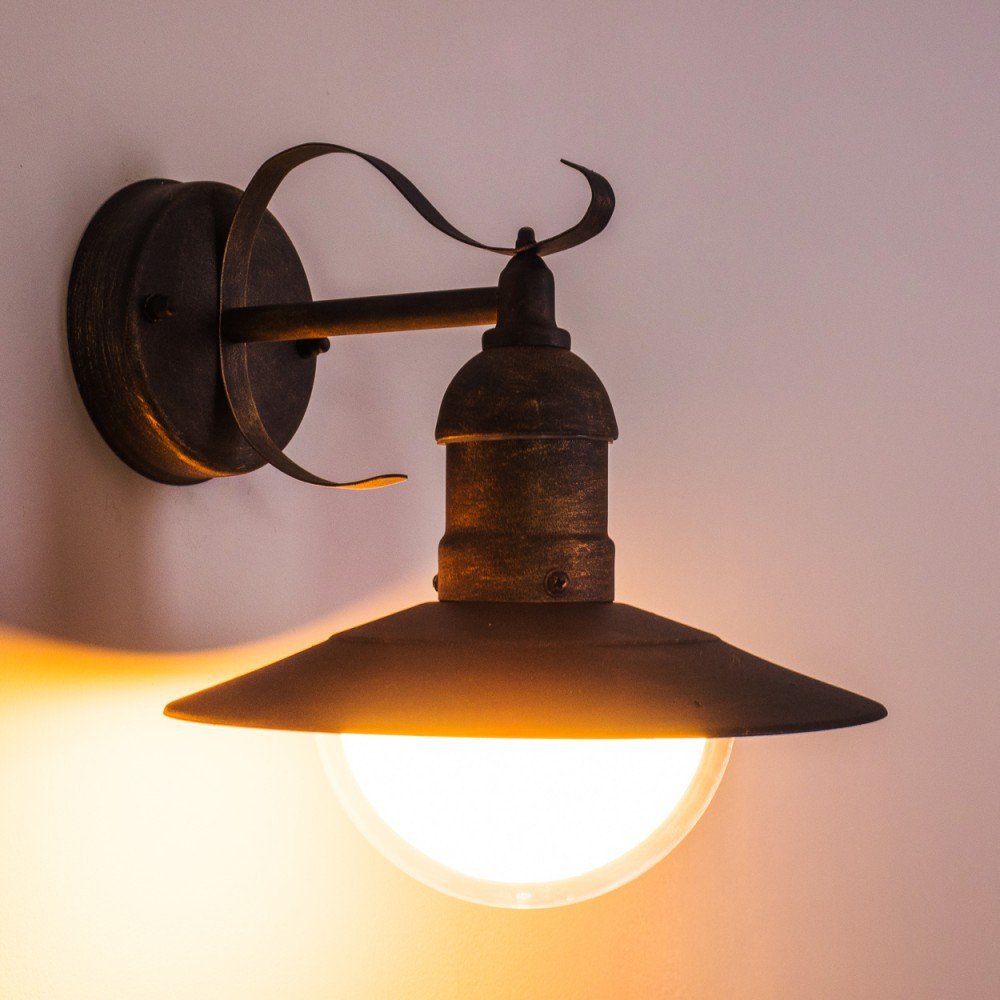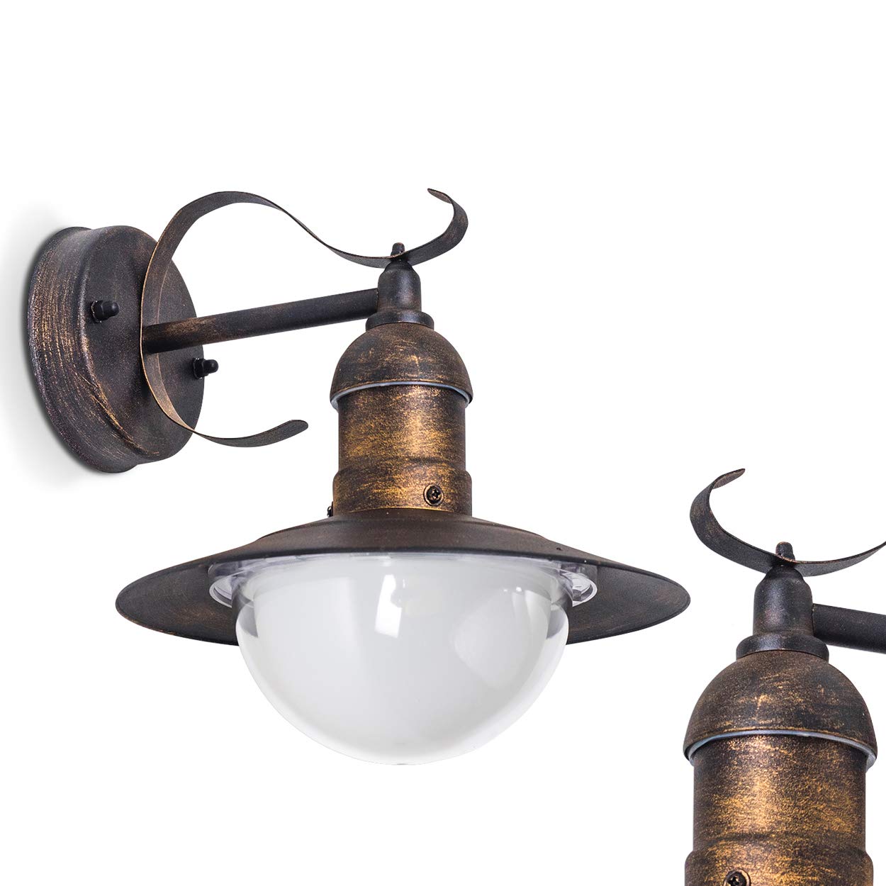 Diese Aussen Wand Beleuchtung ist genau das richtige für Sie, wenn Sie nach einem echten Hingucker für Ihre Fassade suchen. Durch das geschwungene Design und die Retro Farben Gold und Braun könnte sie ein Zeitreisender sein, der schon viele Jahre und Geschichten miterlebt hat. Sie können die Aussen Wandbeleuchtung ganz einfach über die mitgelieferte Befestigung an Ihrer Fassade anbringen. Ein Leuchtmittel gehört nicht zum Lieferumfang. Sie entscheiden zwischen LED Lampen, Eco Halogen Leuchtmitteln, Energiesparlampen und herkömmlichen Leuchtmitteln. Die Aussenleuchte ist absolut wetterfest, so dass Sie lange Freude daran haben werden.Fassung/Leuchtmittel: 1 x E27 max. 60 Watt (ohne Leuchtmittel) Geeignet für: LED Leuchtmittel, Eco-Halogen Leuchtmittel, Energiesparleuchtmittel, herkömmliches Leuchtmittel Material der Leuchte: Metall Farbe der Leuchte: braun-gold Material des Schirms: Kunststoff Farbe des Schirms: weiss Durchmesser Leuchte: 25 cm Höhe: 26 cm Ausladung: 27 cm Durchmesser Aufhängung: 12 cm Schutzklasse: IP44