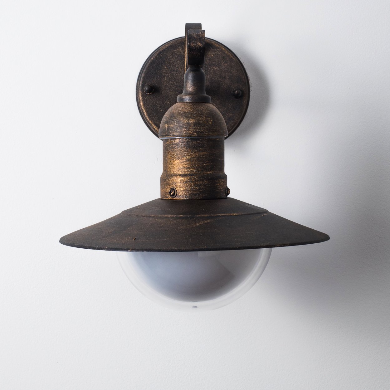 HOFSTEIN Aussenwandleuchte Broni, Aussenwandlampe aus Metall/Kunststoff in Braun/Gold/Weiss, Wandleuchte Down aussen im Landhaus/Retro/Vintage-Stil, E27, IP44, Hof, Aussenbereich, Terrasse, Haustür