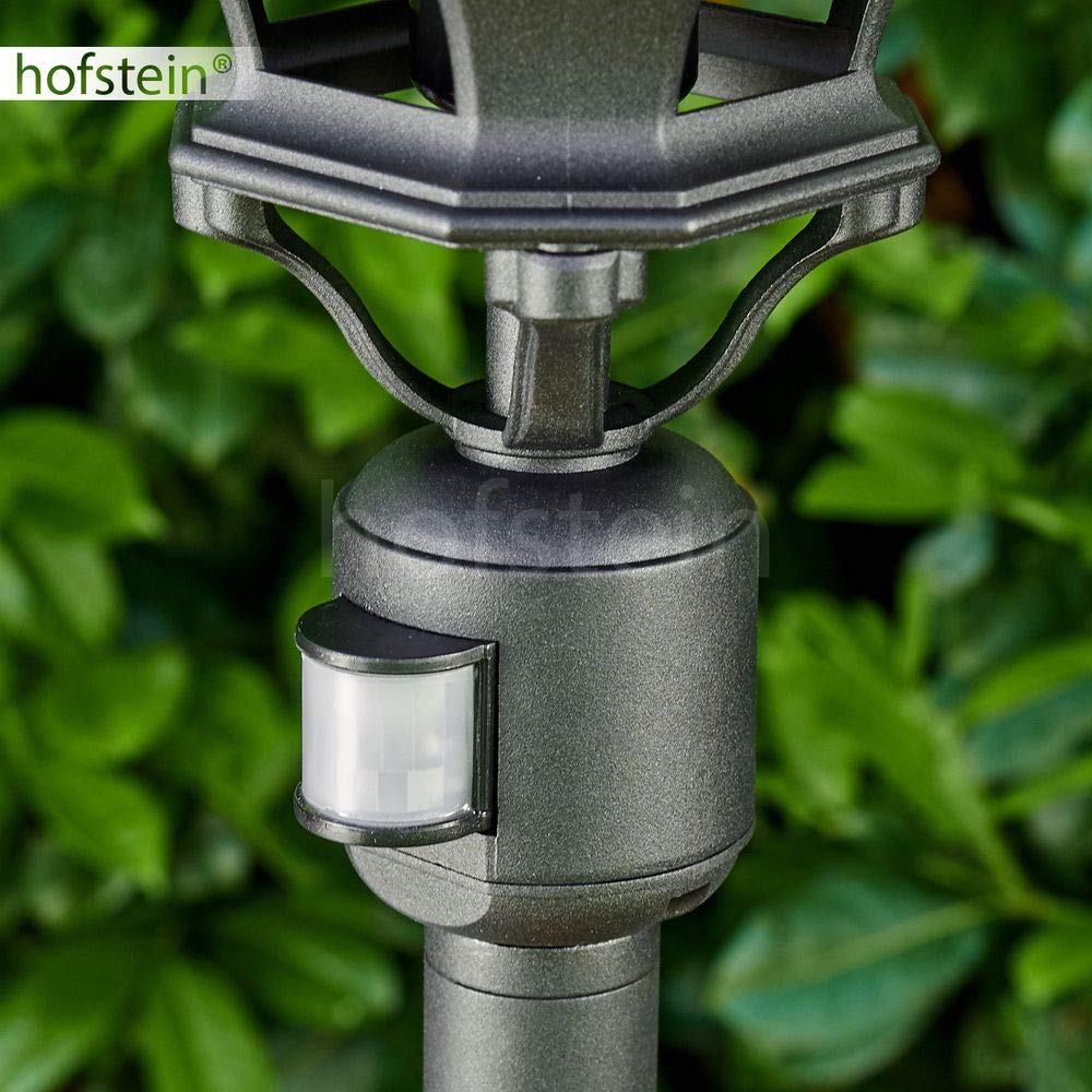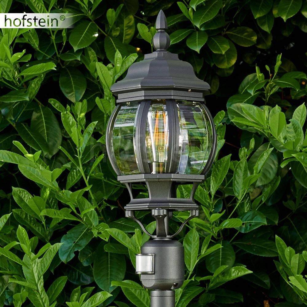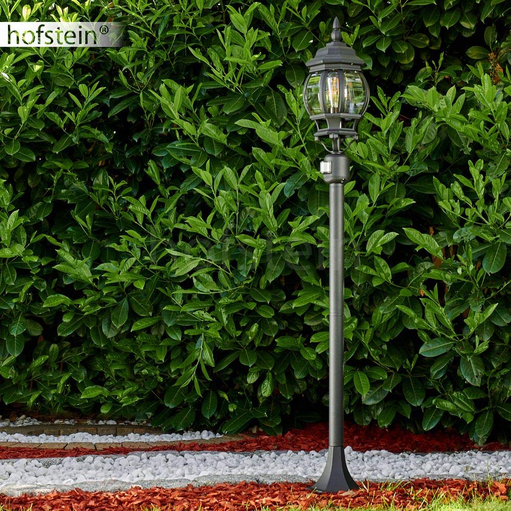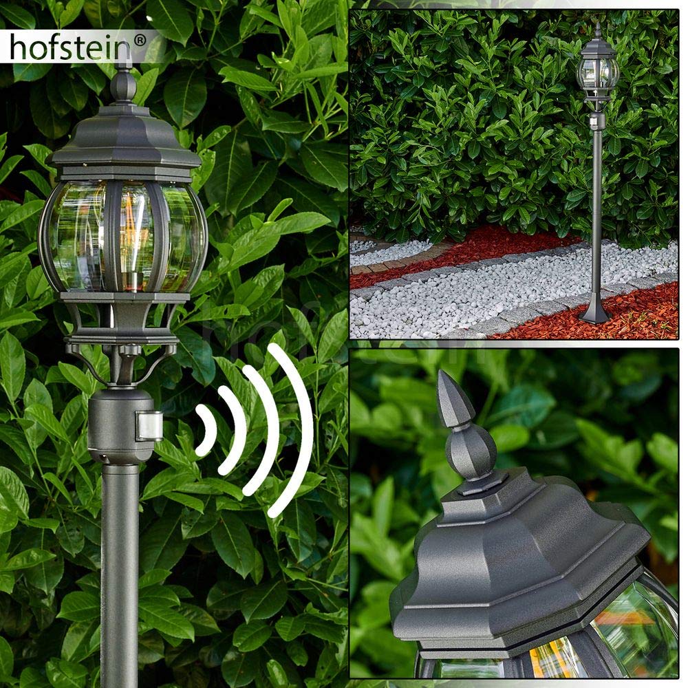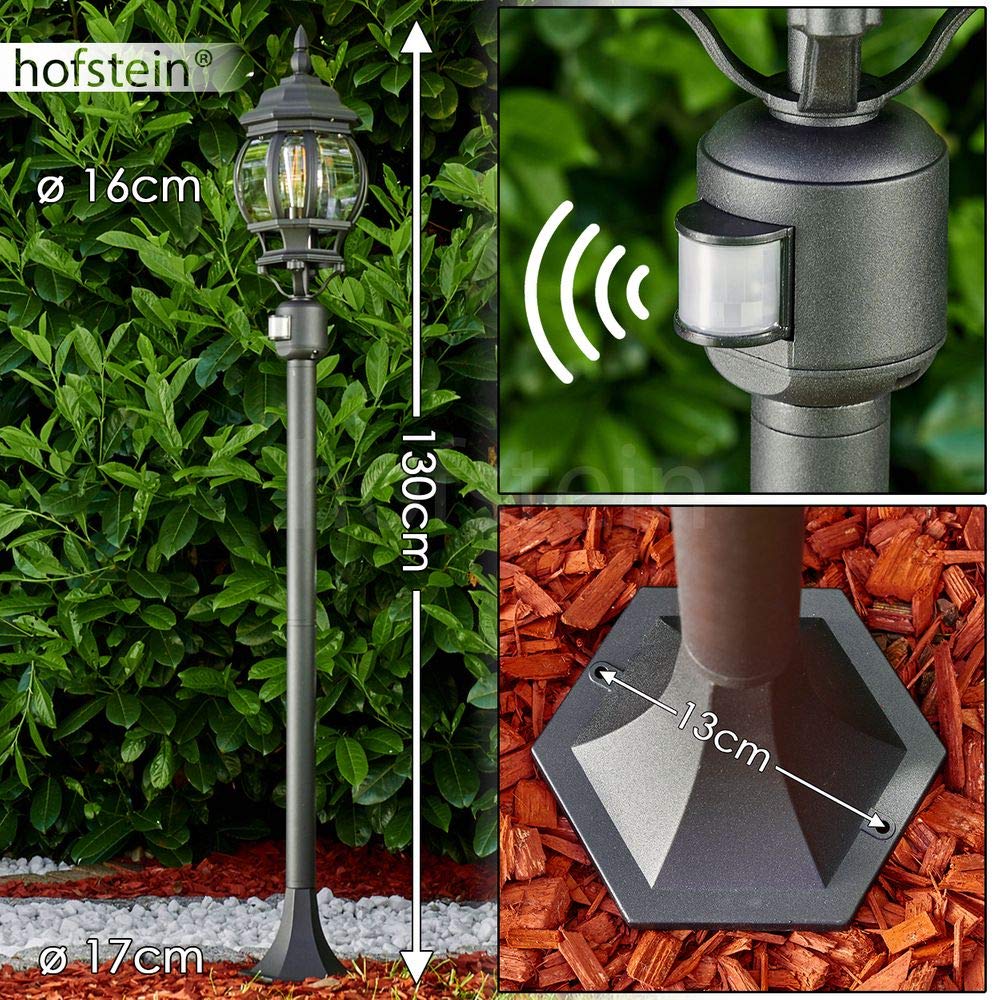 HOFSTEIN Aussenstehleuchte Lentua mit Bewegungsmelder, Aussenwegeleuchte aus Metall/Kunststoff in Schwarz-matt/Klar, Wegeleuchte im Antik/Vintage-Design für Garten, Aussenbereich, Hof, 130 cm, E27, IP44