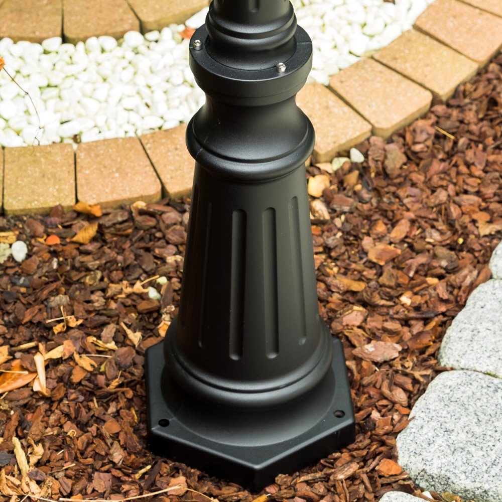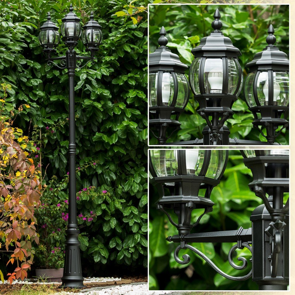 HOFSTEIN Aussenleuchte Kobe, Laternen für Draussen im Antiken Look, Kandelaber aus Aluguss in Schwarz mit Kunststoff-Scheiben, 3-armige Wegeleuchte, Outdoor Laterne 230 cm, IP44, 3x E27 Gartenlaterne