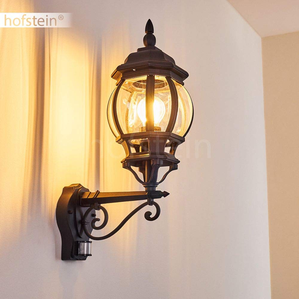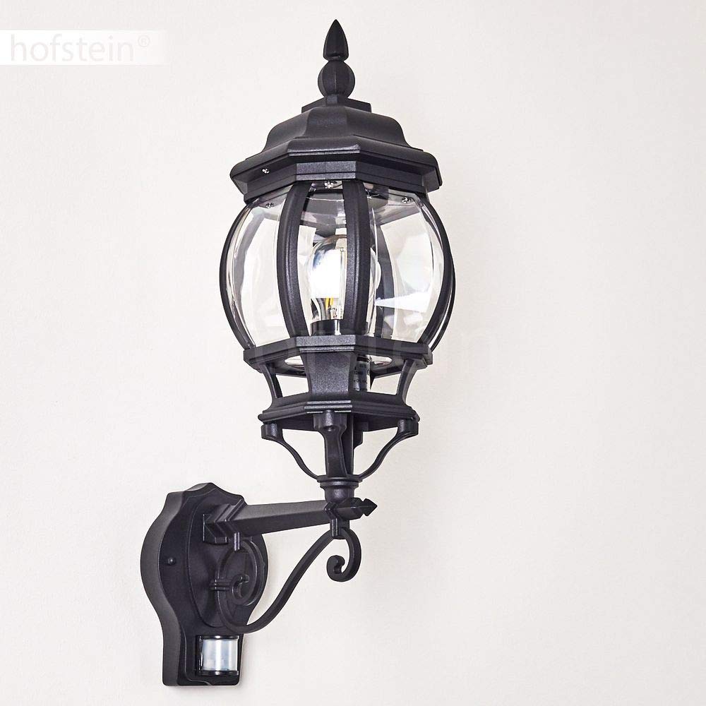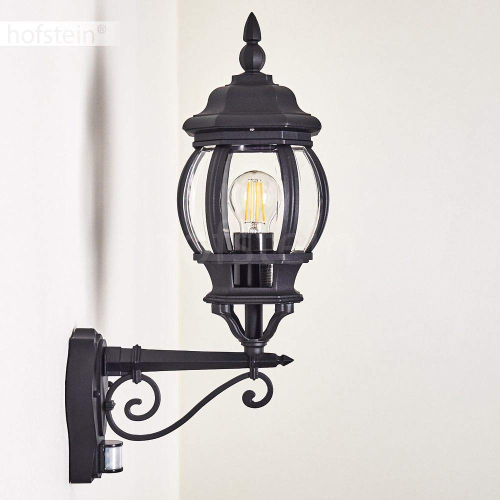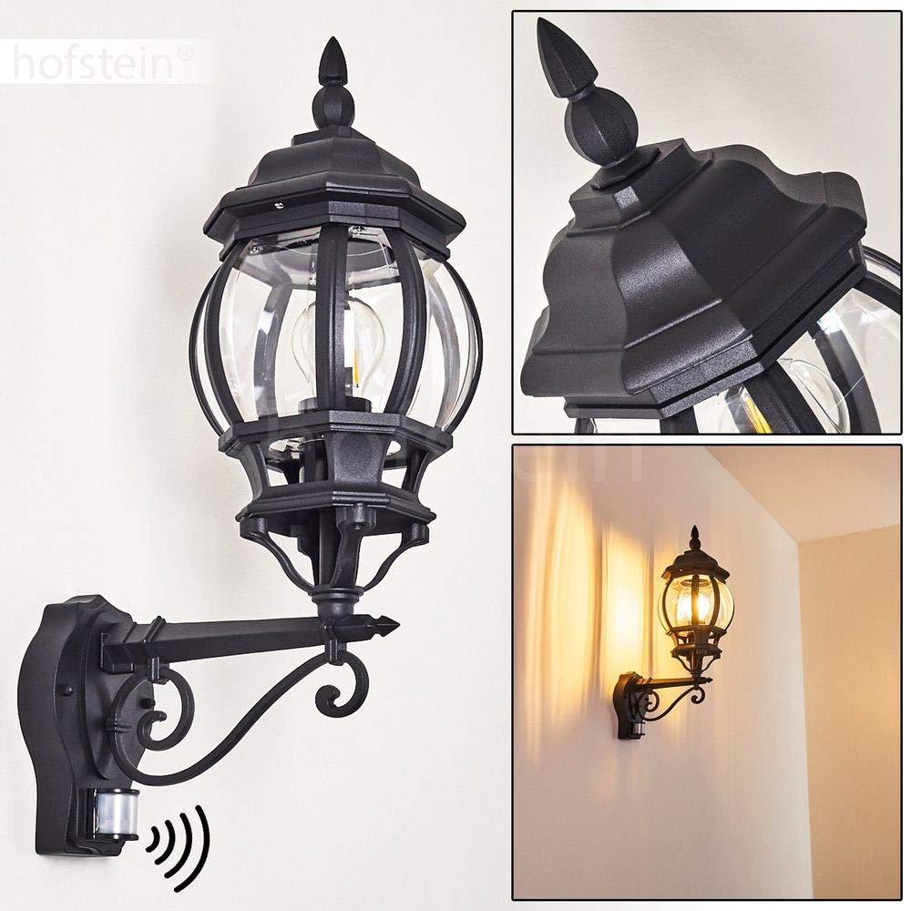 HOFSTEIN Aussenwandleuchte Lentua, Aussenwandlampe mit Bewegungsmelder aus Metall/Kunststoff in Schwarz/Klar, Wandleuchte Up im Retro/Vintage-Design, E27, IP44, Eingangsbereich, Terrasse, Haustür, Hof