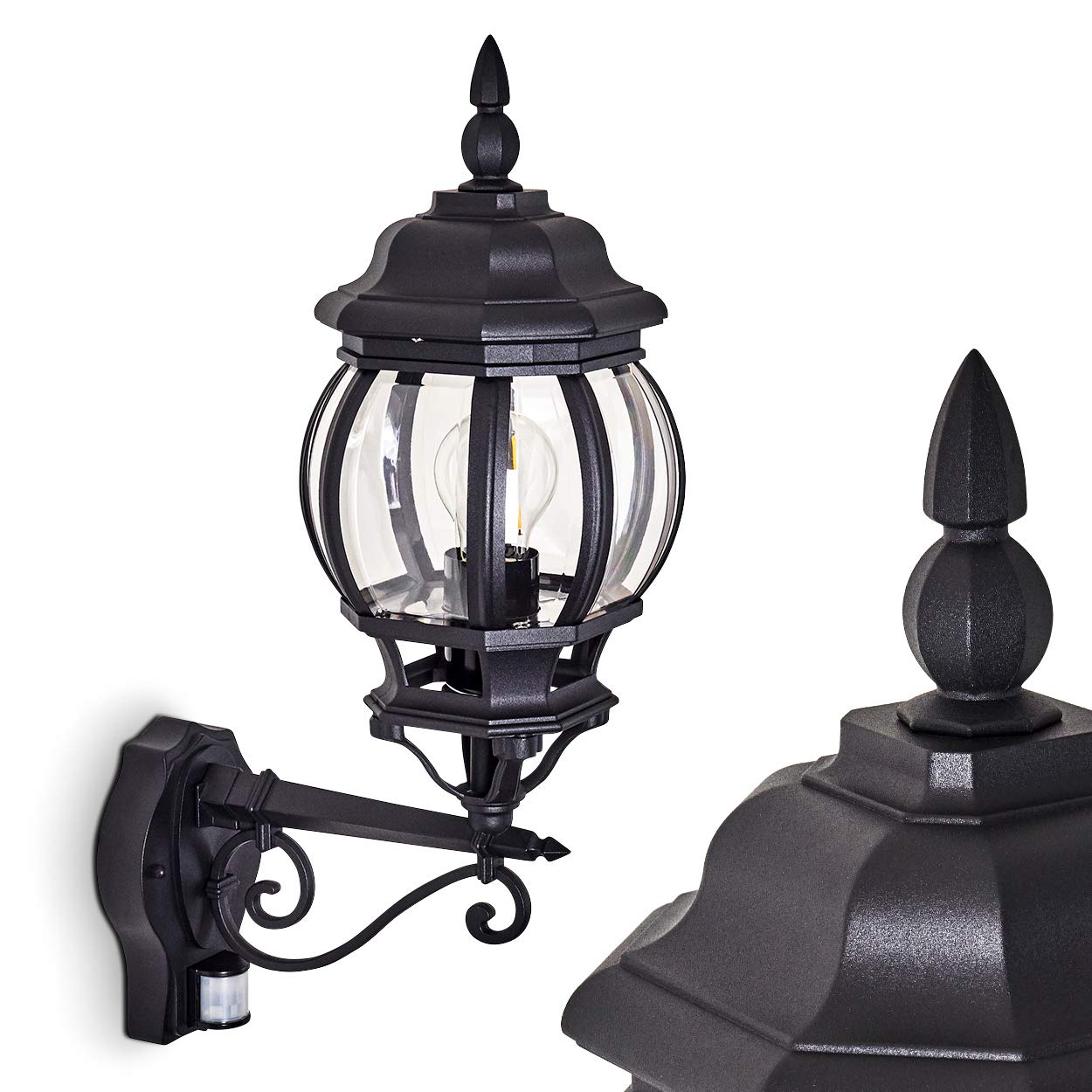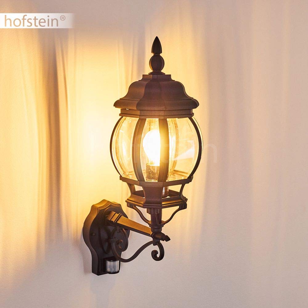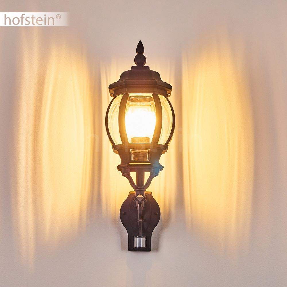 HOFSTEIN Aussenwandleuchte Lentua, Aussenwandlampe mit Bewegungsmelder aus Metall/Kunststoff in Schwarz/Klar, Wandleuchte Up im Retro/Vintage-Design, E27, IP44, Eingangsbereich, Terrasse, Haustür, Hof
