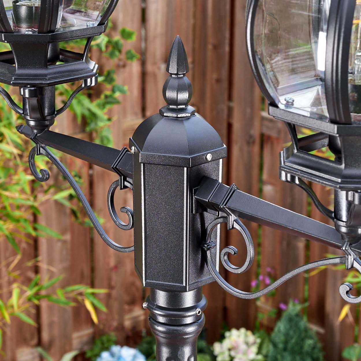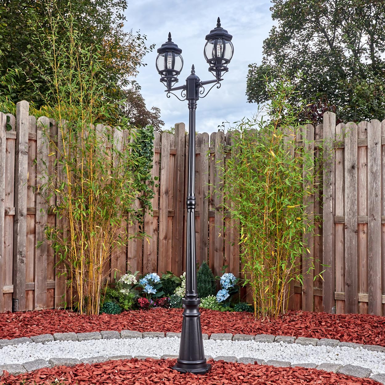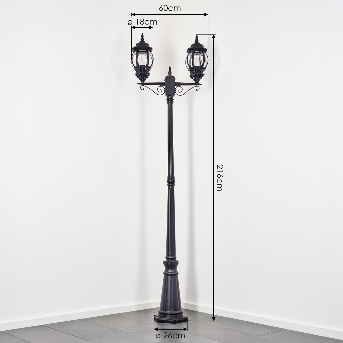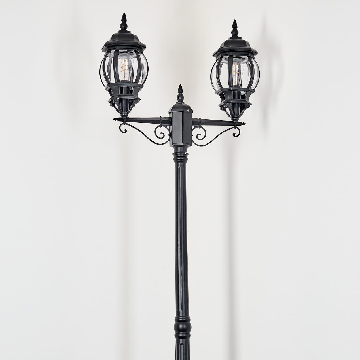 HOFSTEIN Kandelaber Lentua, Aussenwegeleuchte aus Metall/Glas in Schwarz/Klar, Wegeleuchte im Vintage/Antik/Landhaus-Design für Garten, Aussenbereich, Hof, Höhe 216 cm, 2 x E27, IP44