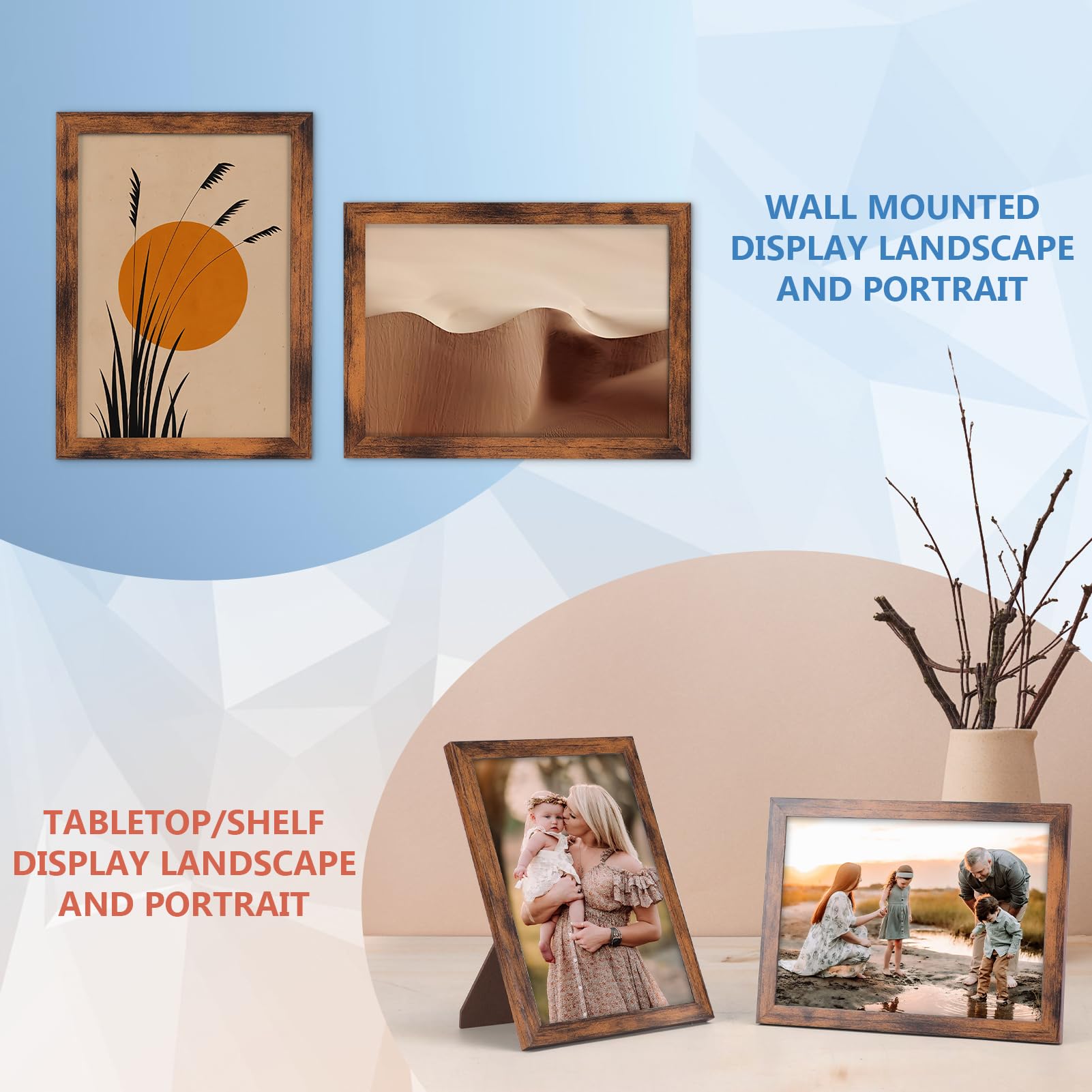 - 【Sicheres und Leichtes Material】 Das klassische braun bilderrahmen 18x13 Set kommt mit leichtem Rahmen und Kunststoff-Fenster, das für die Sicherheit zu Hause entworfen ist, besonders für Kinder.