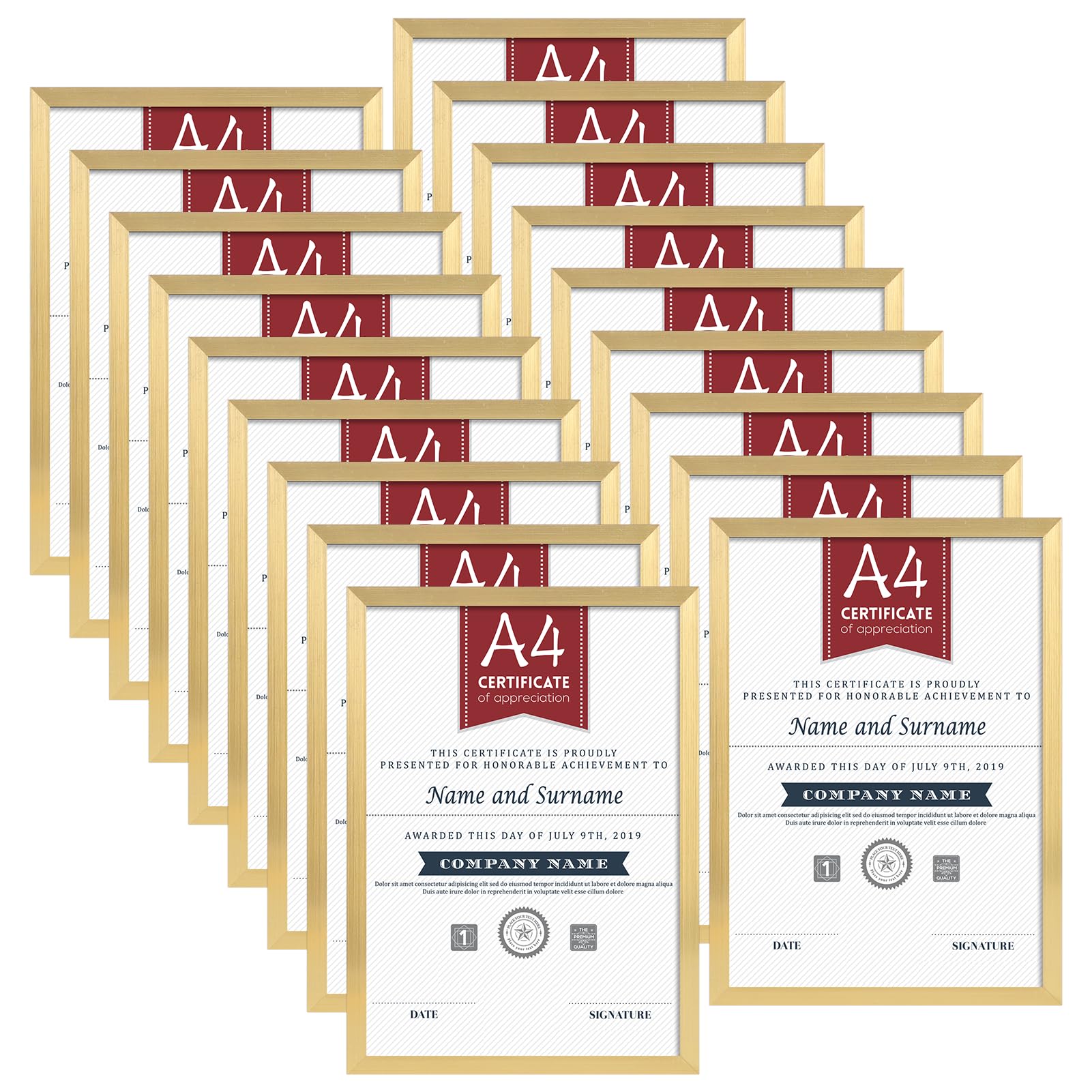 Hoikwo 18 Stück Bilderrahmen A4 Set, Gold Rahmen din A4 für 21x29,7 cm Foto Bilder Kinderzeichnungen Kunstwerke Zertifikate Dokumente, Fotorahmen für Wohnzimmer Schlafzimmer Büro Treppenhaus Flur