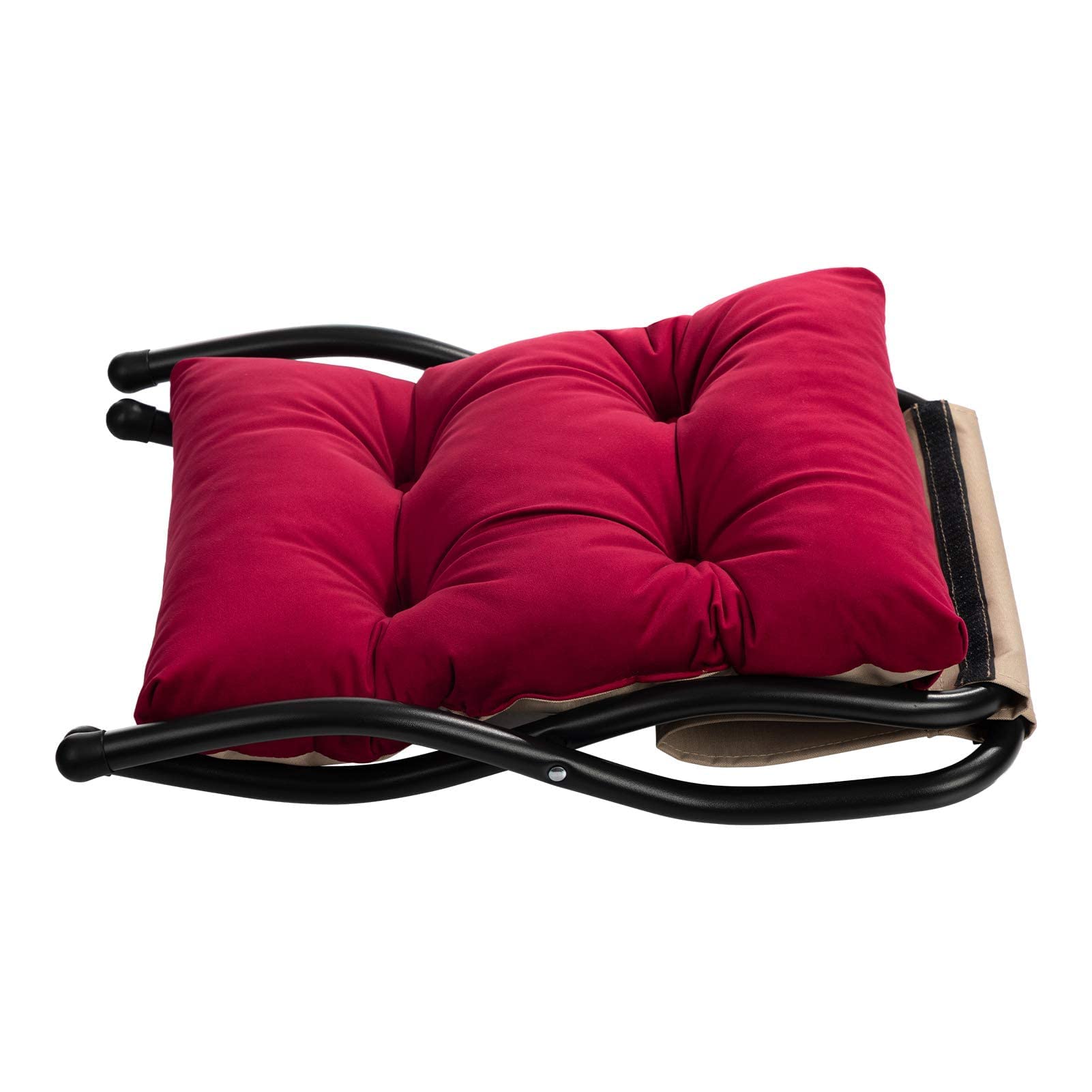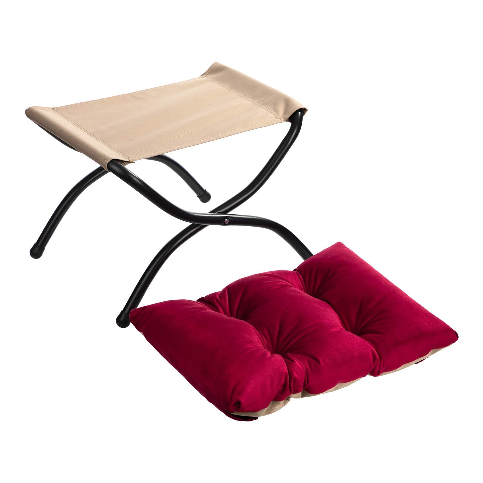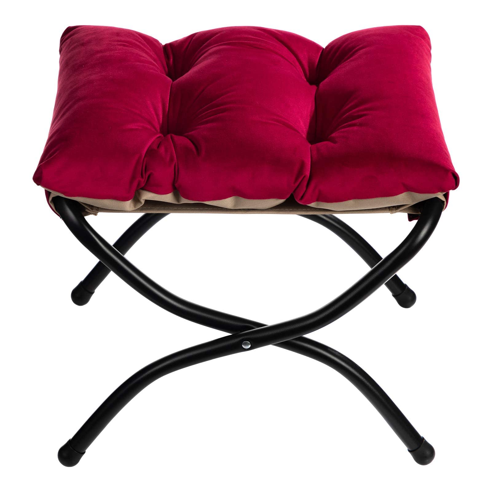 HollyHOME Fusshocker Klappbar Fussablage Fussstütze Faltbar Sitzhocker mit Metallbeinen Fusshocker mit Abnehmbar Gepolsterte Sitzfläche Samt, Rot