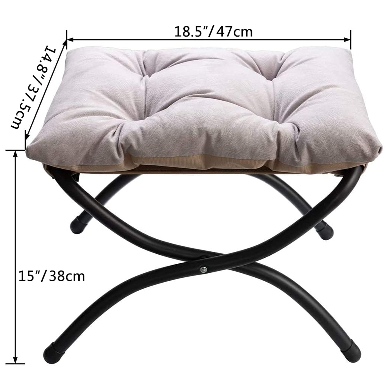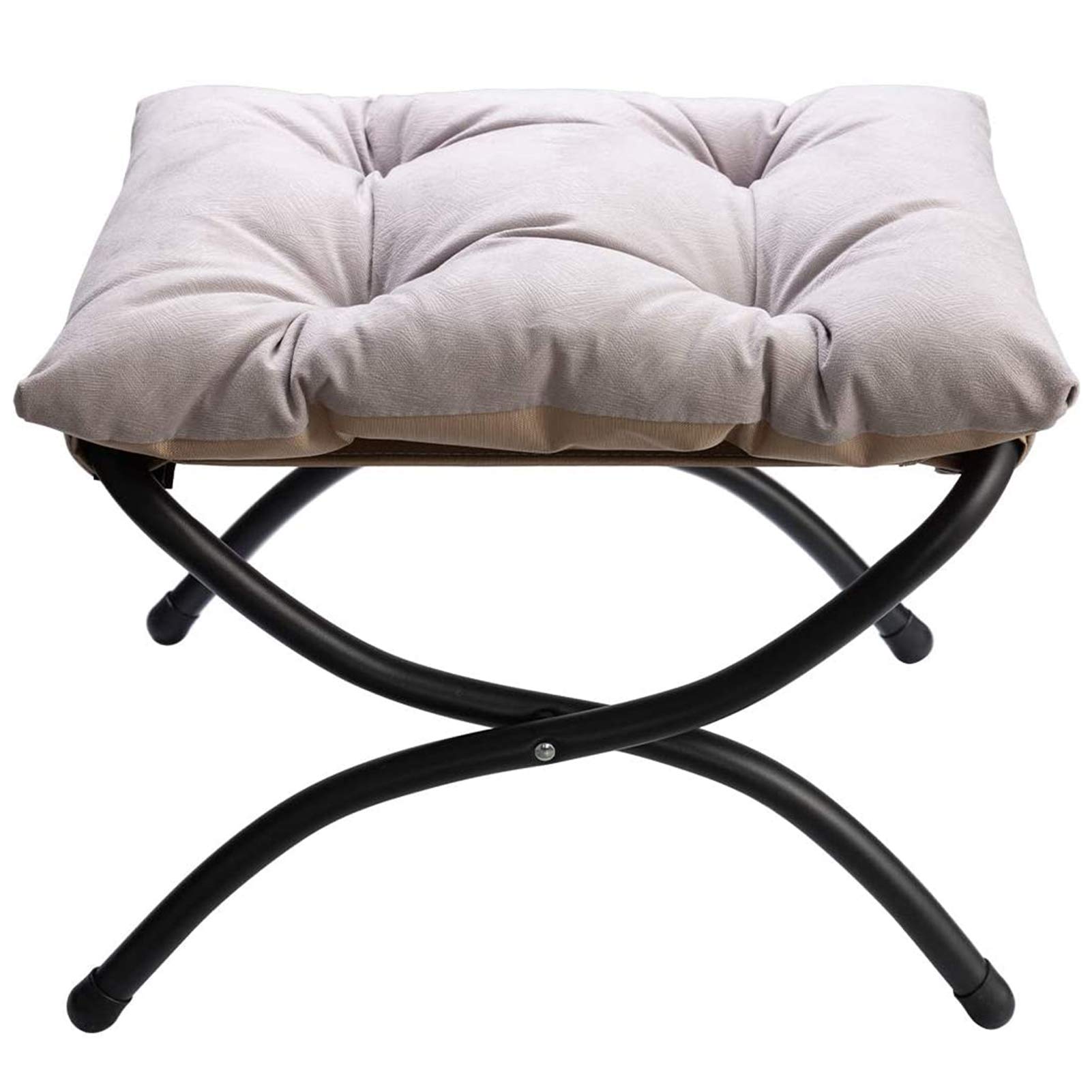 HollyHOME Fusshocker Klappbar Fussablage Fussstütze Faltbar Sitzhocker mit Metallbeinen Fusshocker mit Abnehmbar Gepolsterte Sitzfläche, Grau
