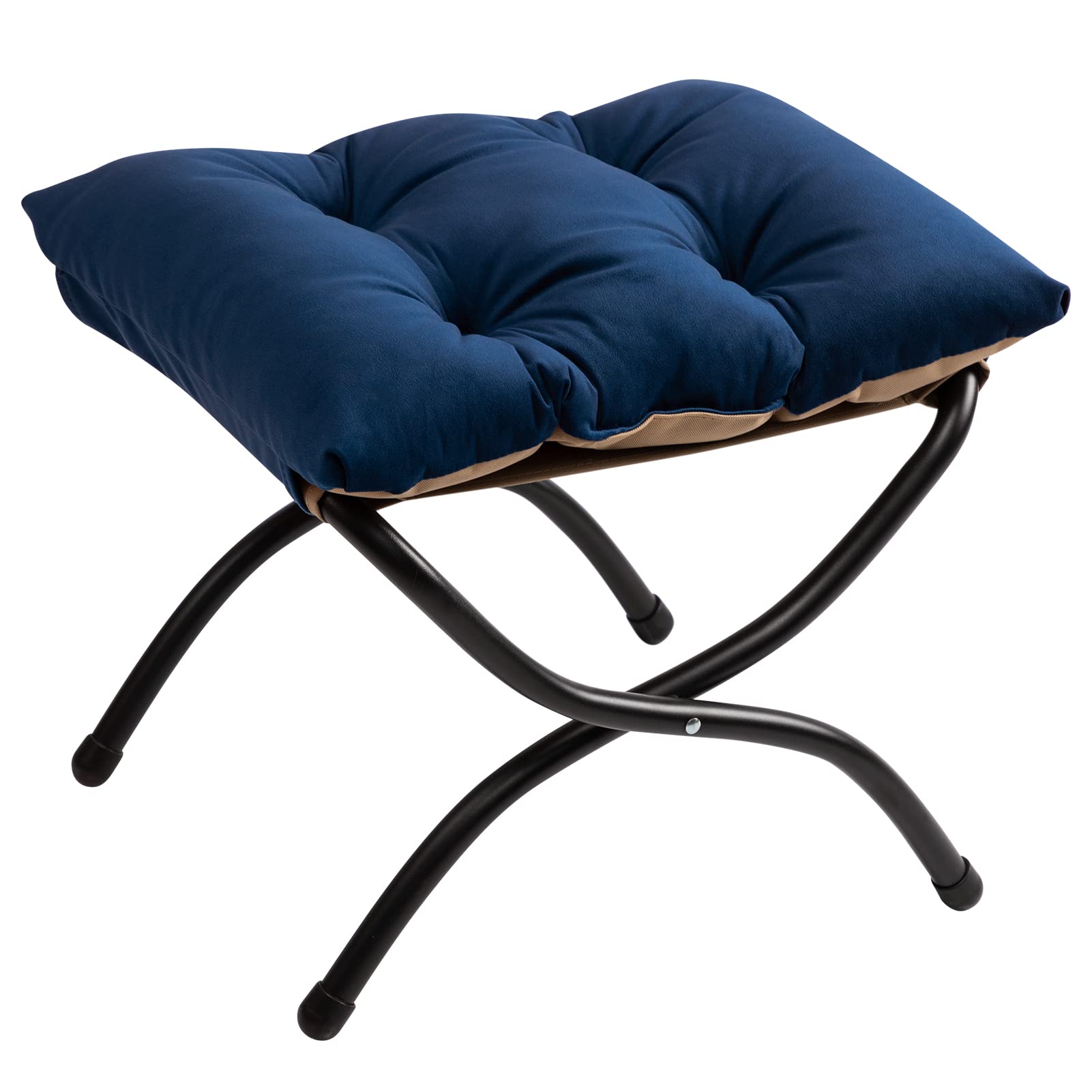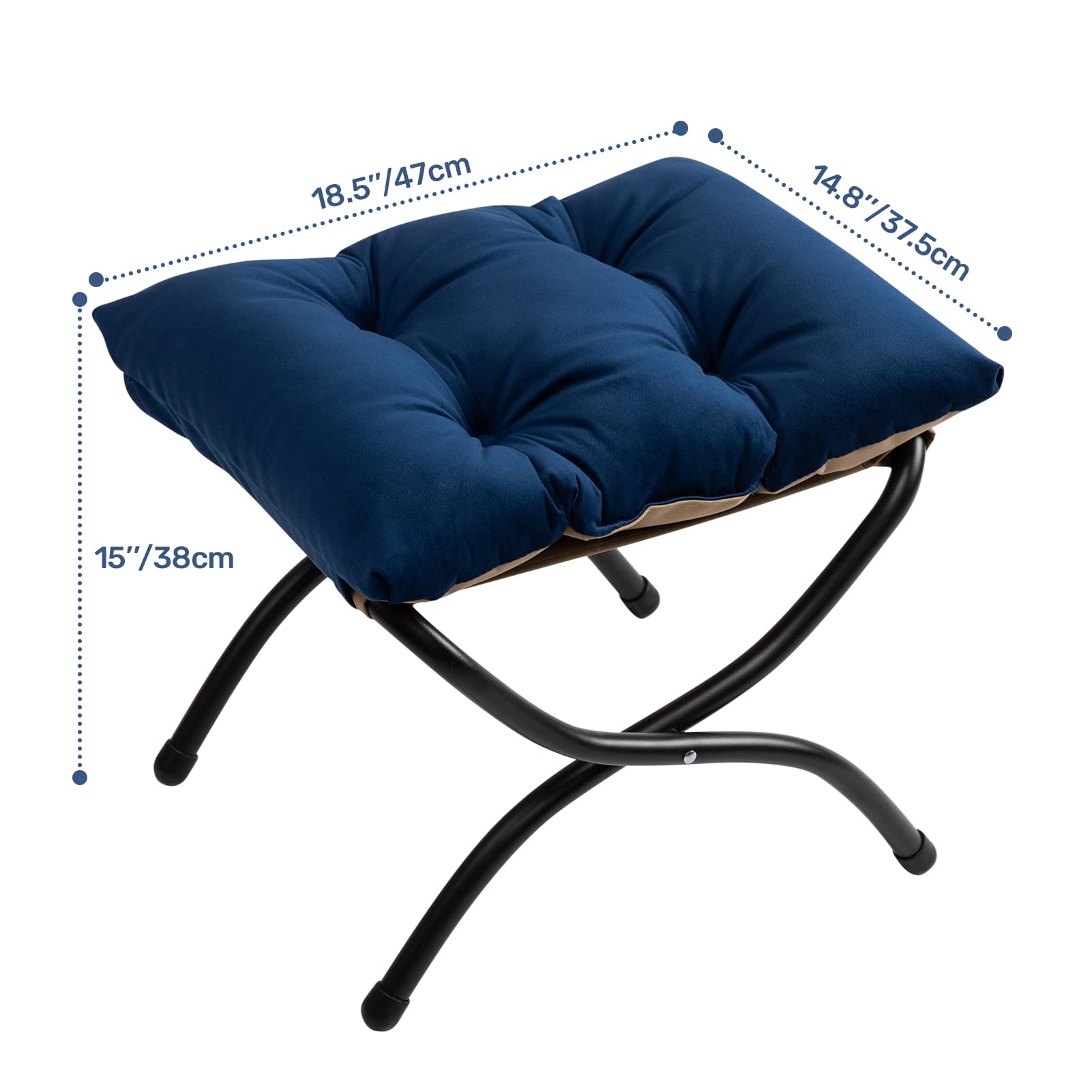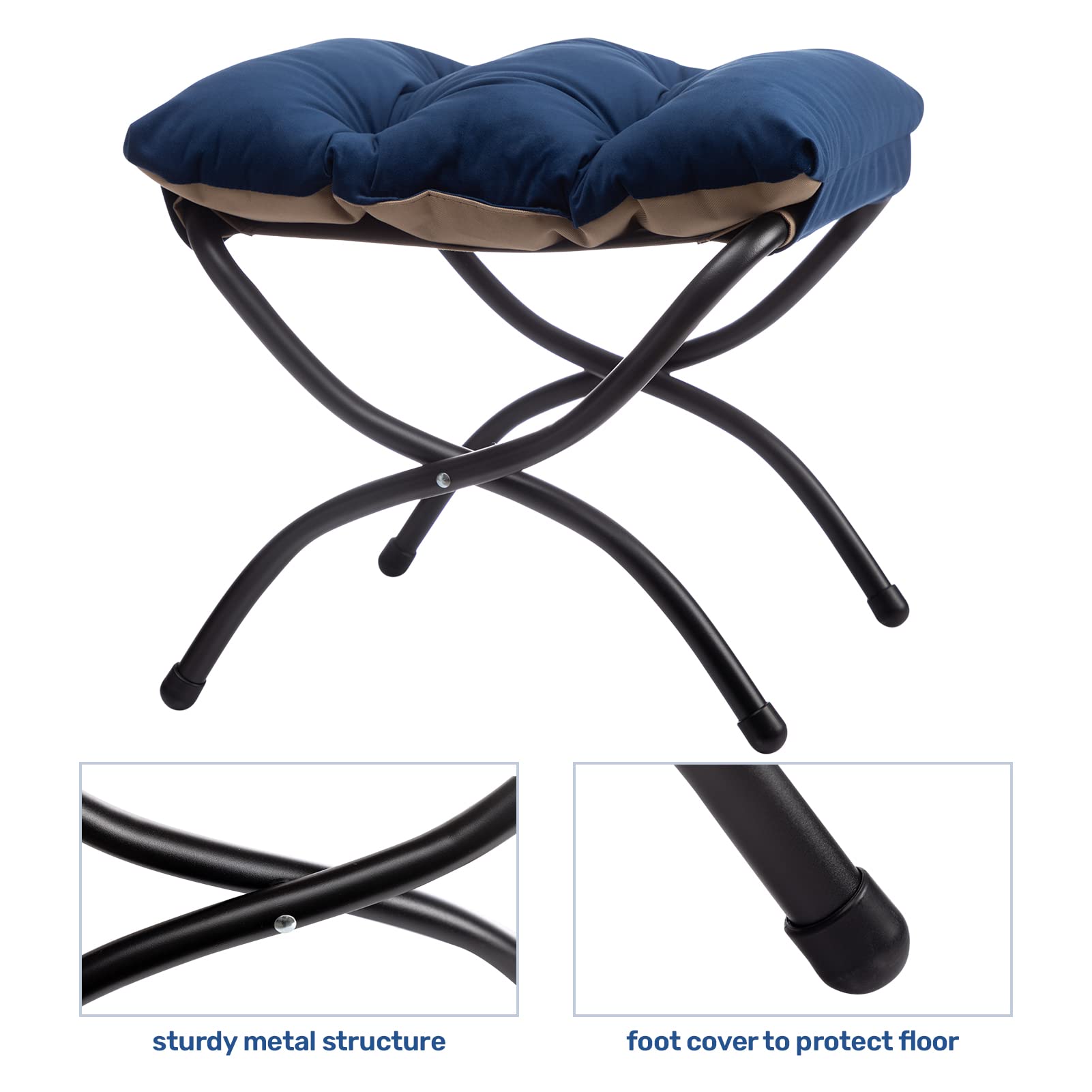 HollyHOME Fusshocker Klappbar Fussablage Fussstütze Faltbar Sitzhocker mit Metallbeinen Fusshocker mit Abnehmbar Gepolsterte Sitzfläche Samt, Dunkelblau